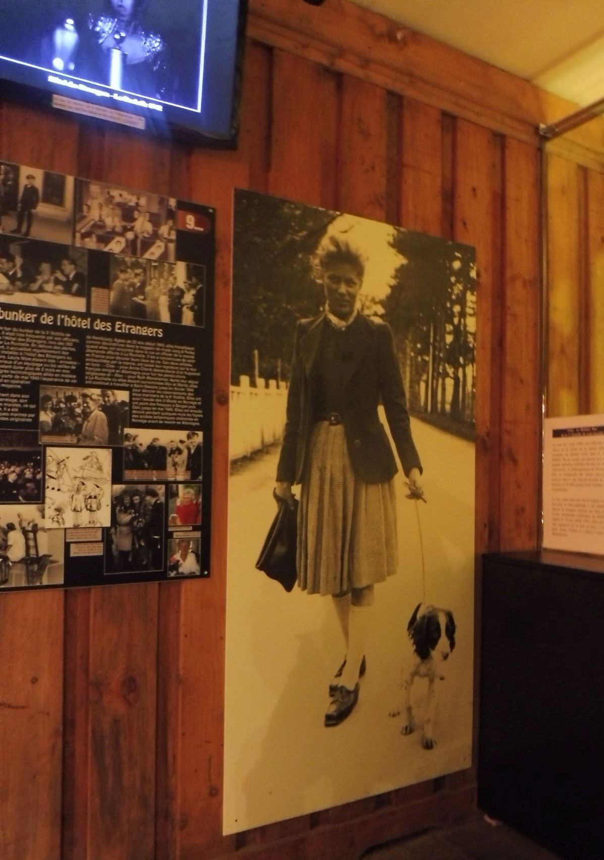 La cosa que crida més l’atenció és que en un lloc com aquest s’hi organitzés un espai en el que s’hi fessin trobades i reunions festives moltíssimes vegades. L’anomenat Bar del hotel des Estrangers és el lloc on es feien aquestes reunions i celebracions de caire social. Aquest panell ho explica molt bé afegint-hi fotografies de l’època.