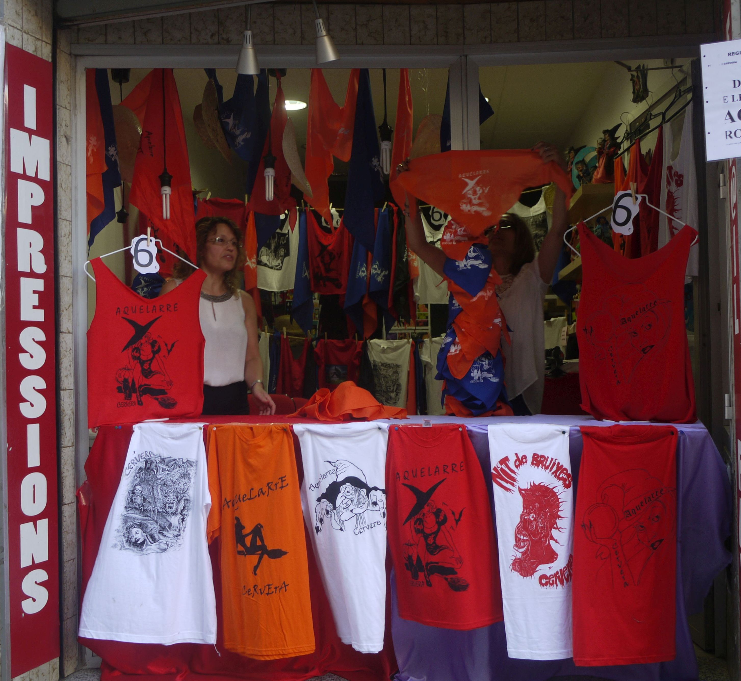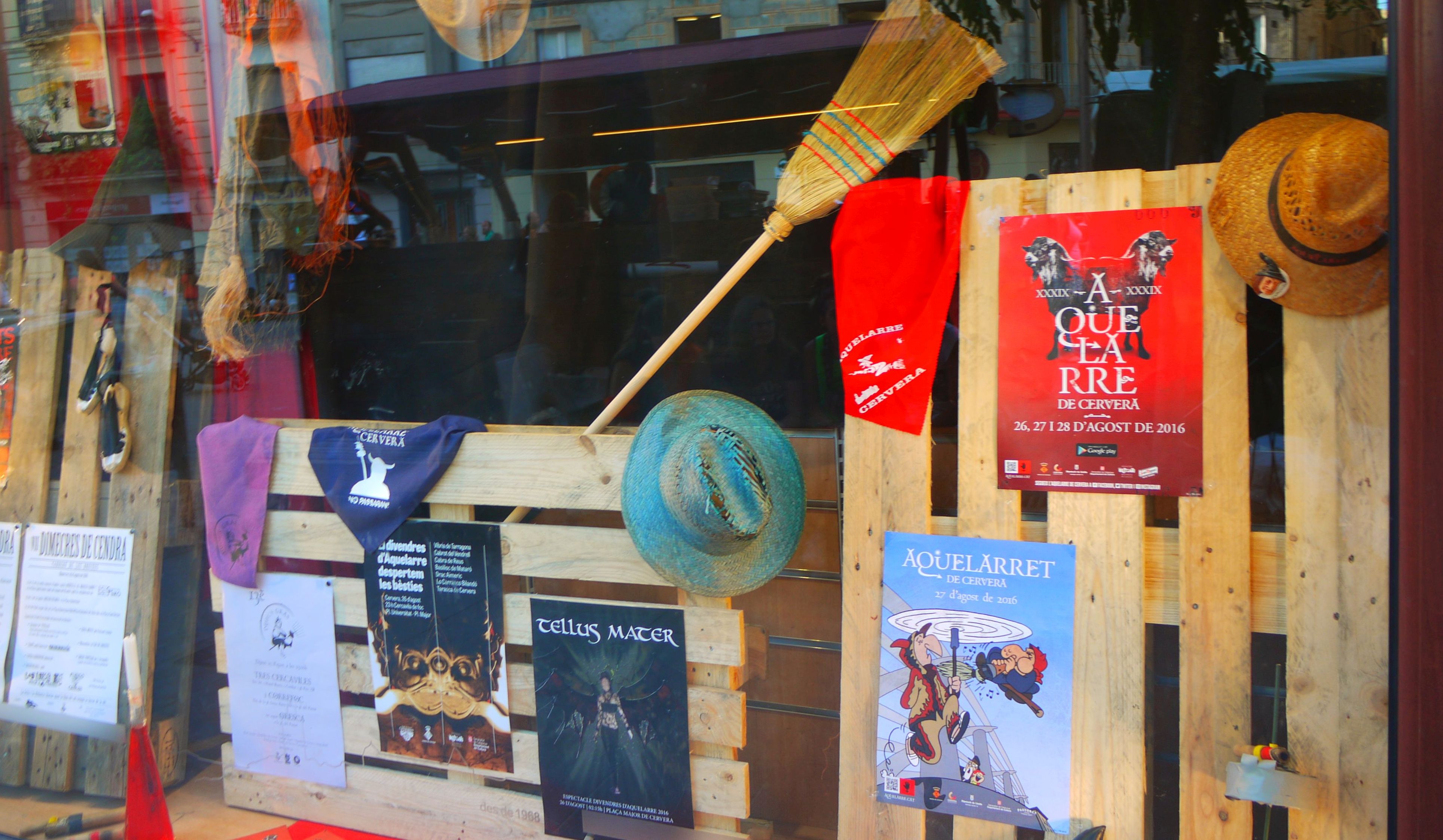 Són molts els establiments que fan un muntatge efímer per tal de vendre tot de productes tèxtils vinculats amb l’Aquelarre. Copisteria Anna Maria feia molt goig…