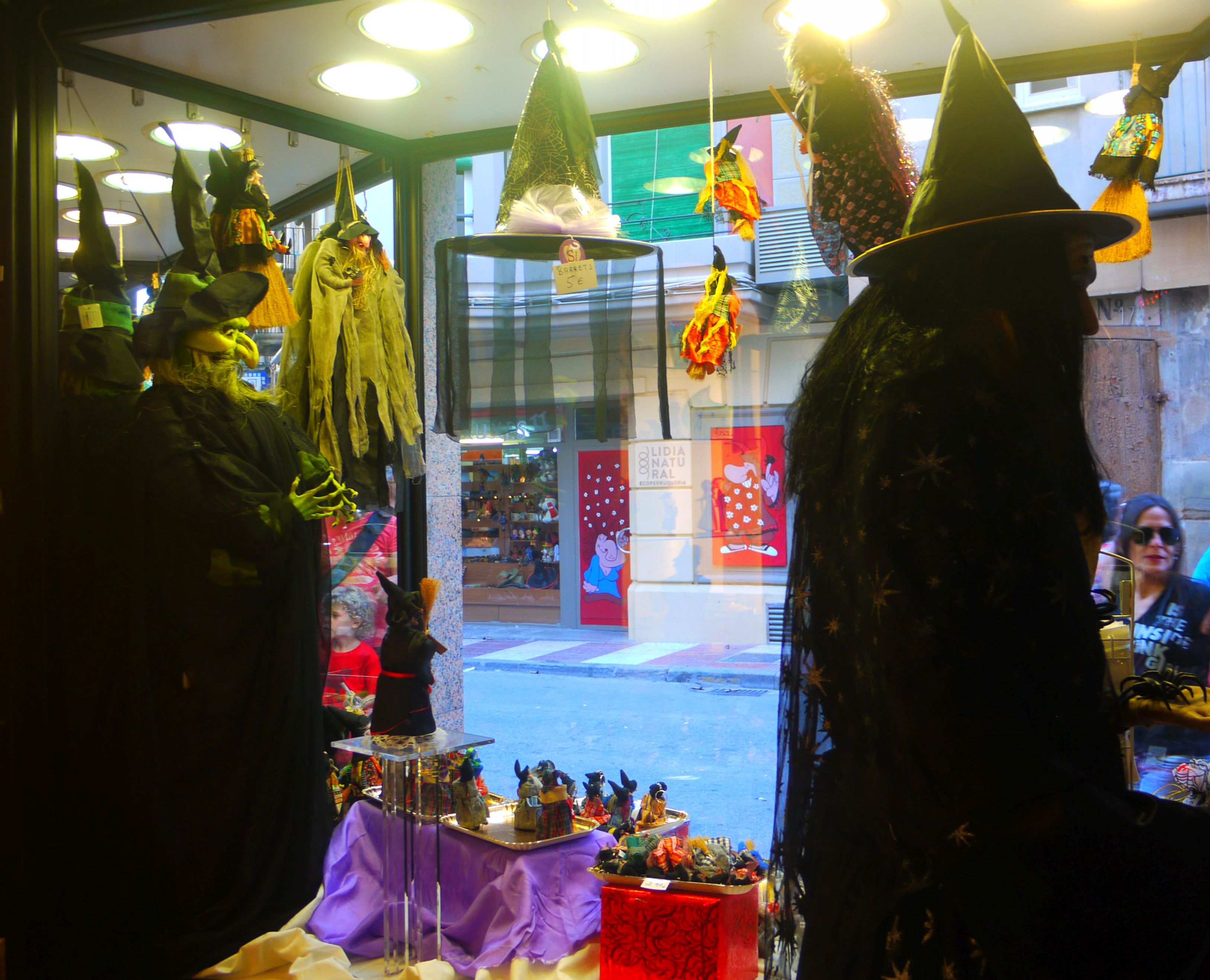 Hi ha establiments que cada any s’esmercen en decorar els seus aparadors amb temes vinculats amb l’Aquelarre.