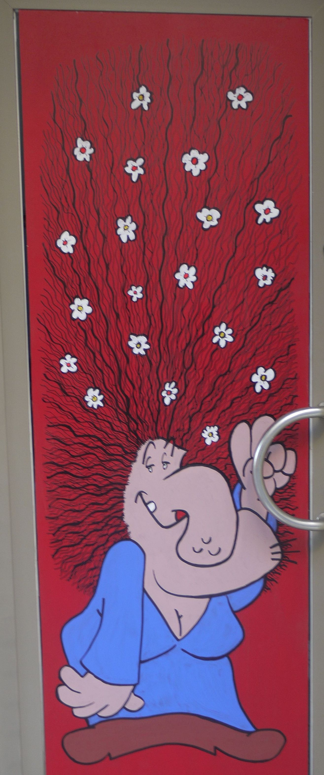 Des d’aquí es podia veure un parell de pintures molt boniques que protegien la porta i la finestra d’un nou establiment dedicat a la perruqueria.