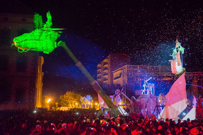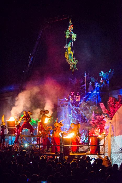 Una altra grúa, que sortia de l’estructura en forma d’aranya que havia participat a la Cercavila, mostrava un preciós cap de drac a dalt de tot. El conjunt quedava enlluernador.