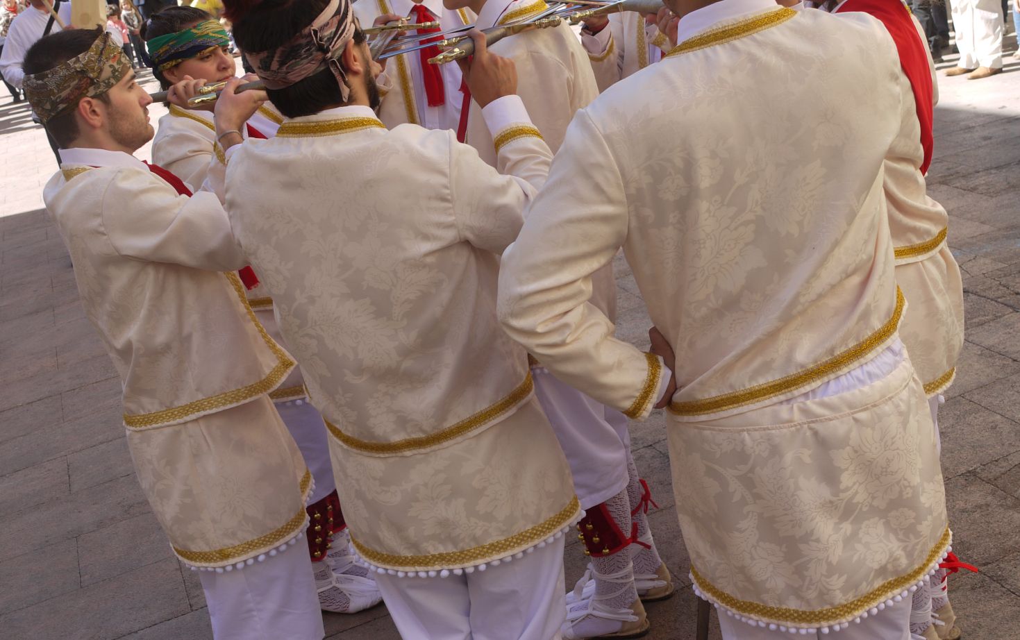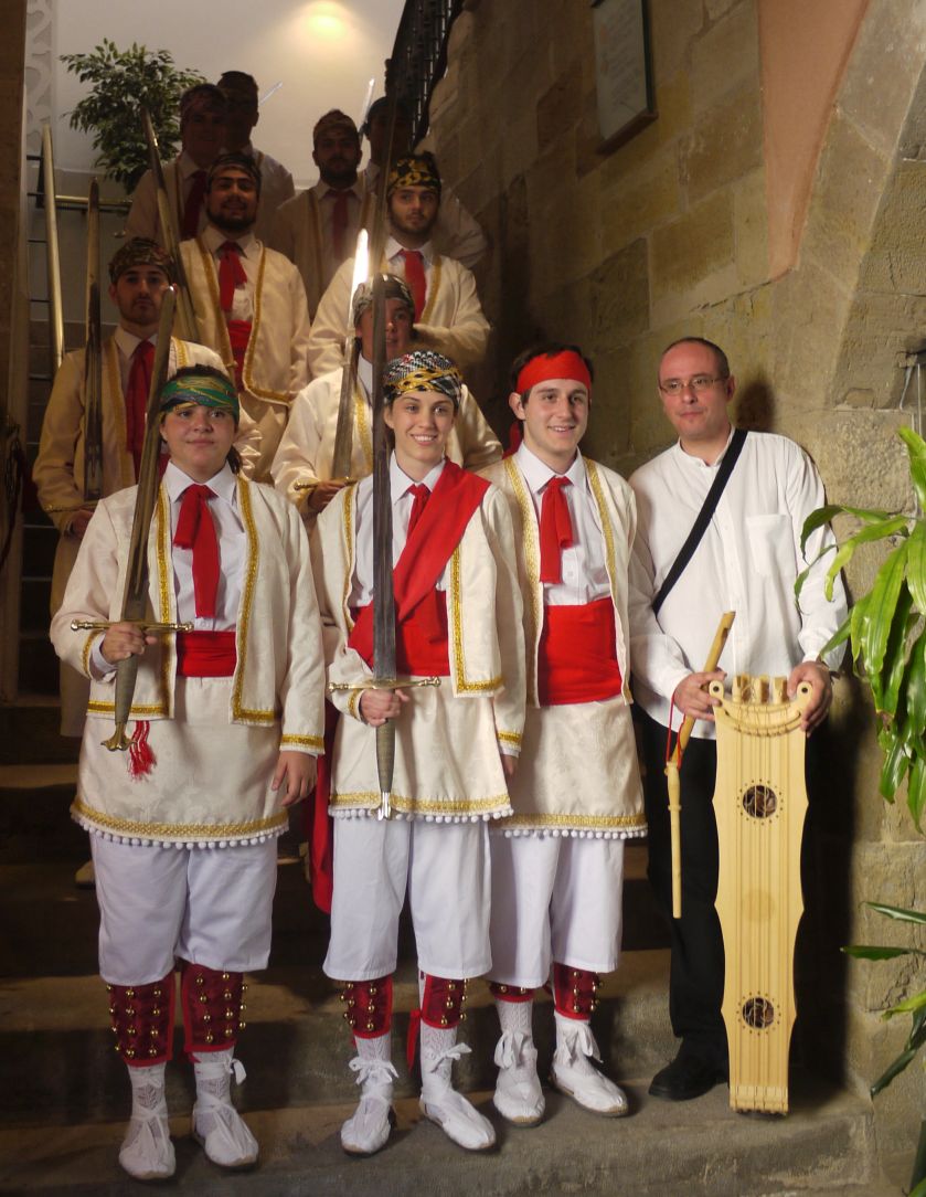 Àngel Vallverdú és el músic que els va acompanyar i assessorar, tant pel que fa al projecte de recreació i en la música, així com també amb la vestimenta i coreografia. Fixeu-vos en l’instrument tan peculiar que porta.