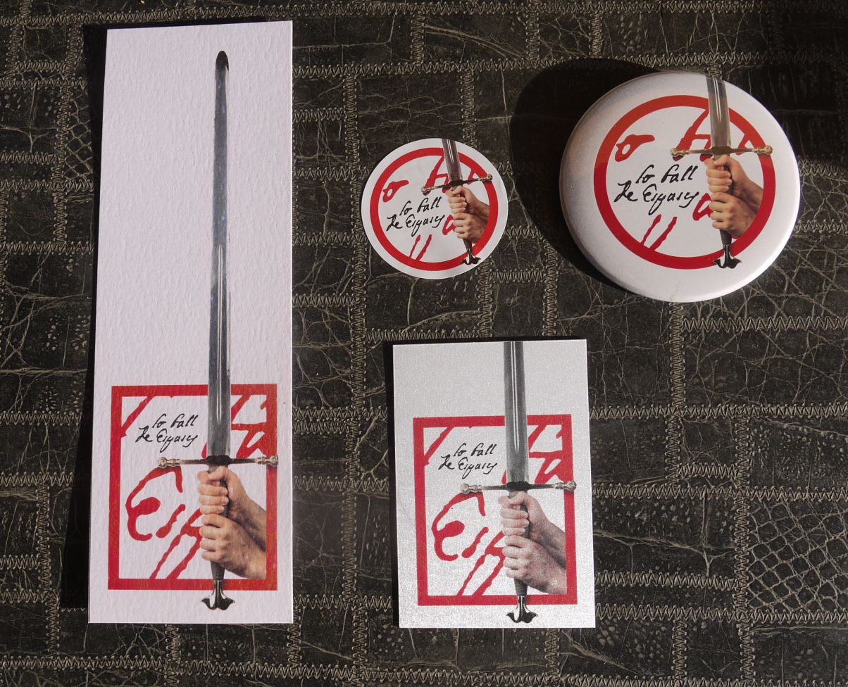 Xavi Miret és qui va fer el disseny. Pel que fa a l’imant, la xapa i el punt de llibre en va tenir cura Sebastià Caus. Els adhesius i les litografies les van imprimir a Copisteria Travesser i la fotografia del cartell la va fer Sebastià Caus.
