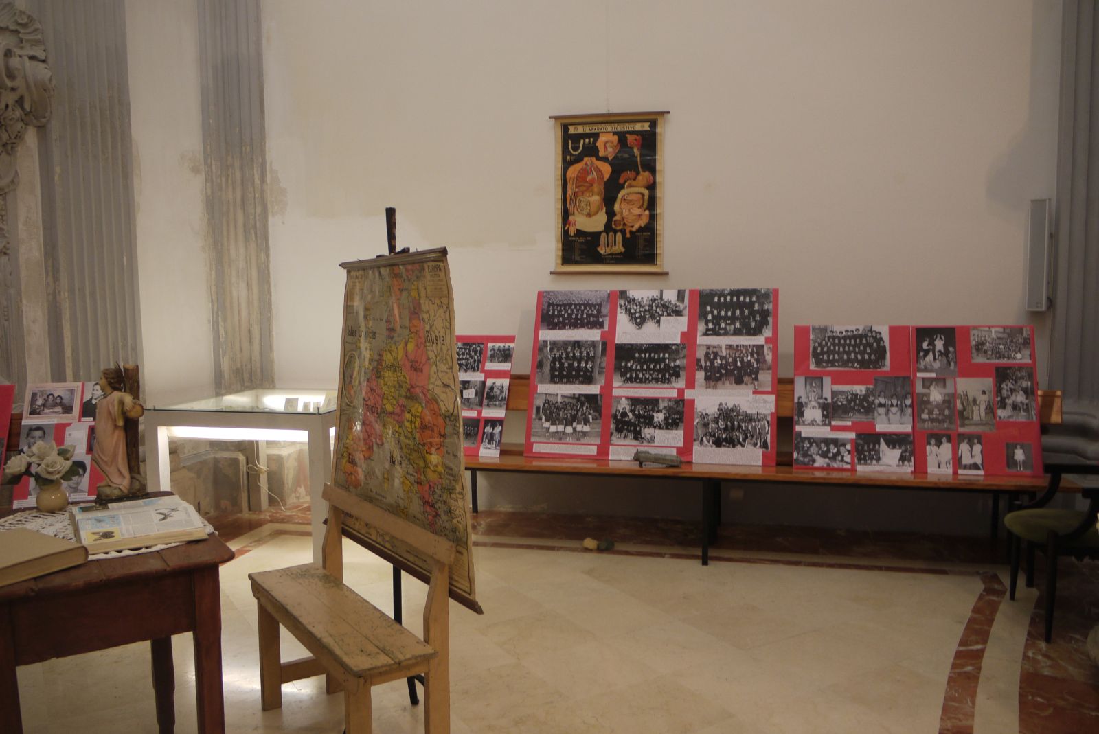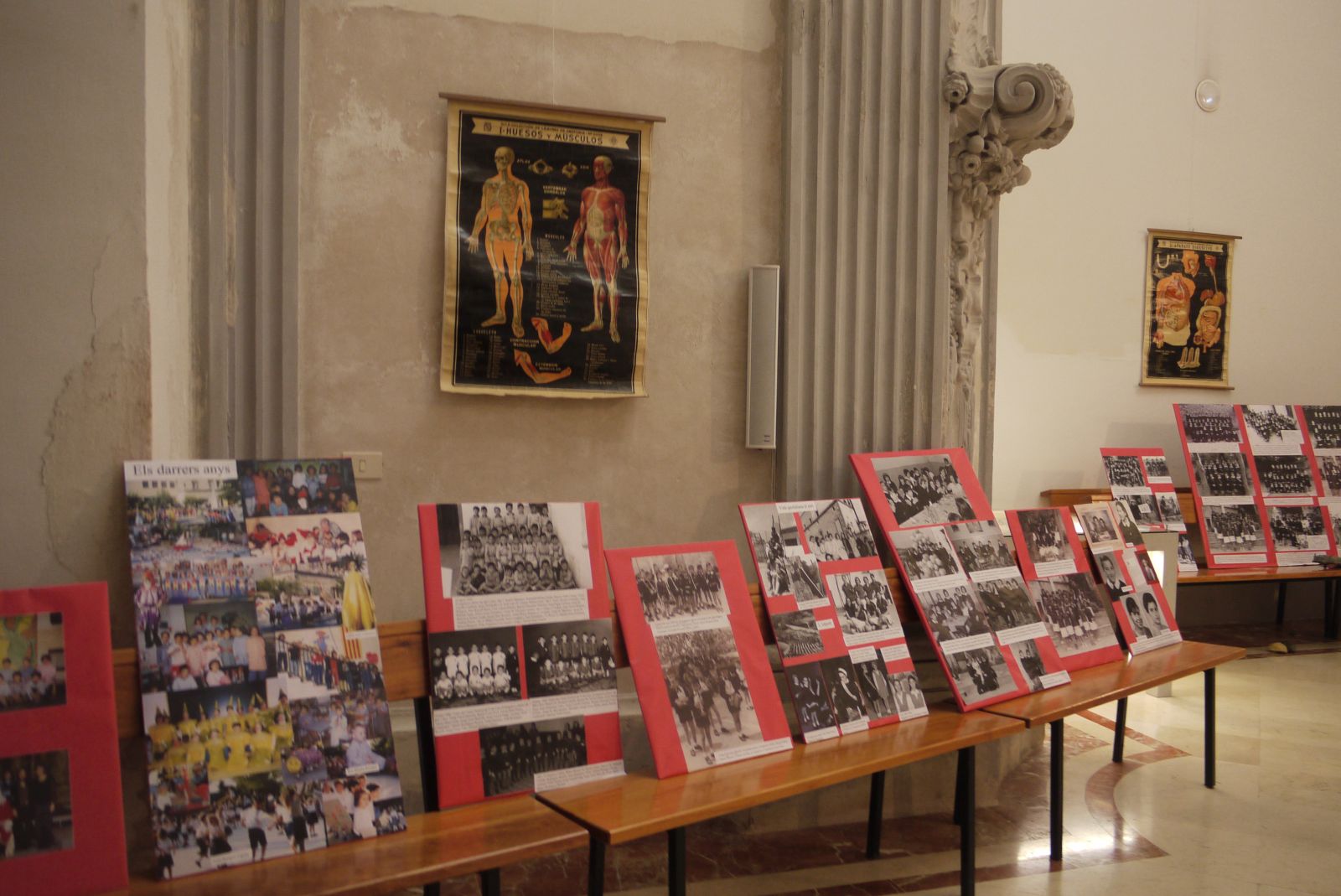 Dues vitrines feien d’expositors. S’hi podien veure tot un reguitzell de records que donaven fe de la vida diària del centre educatiu.