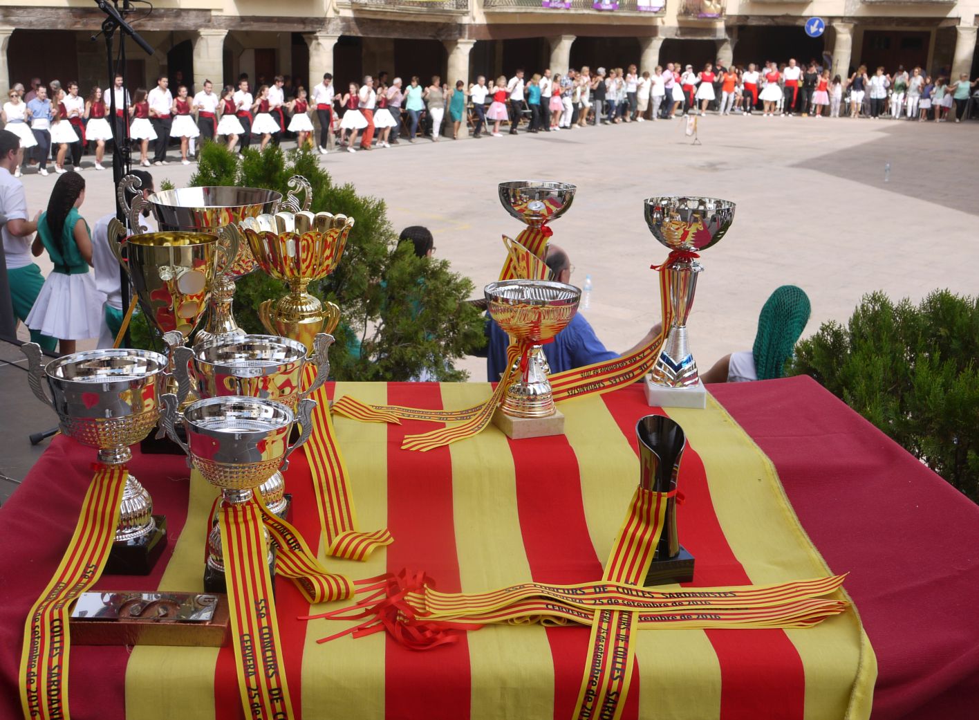 Els trofeus, ja preparats, i a punt de ser entregats als guanyadors del Concurs de Sardanes.