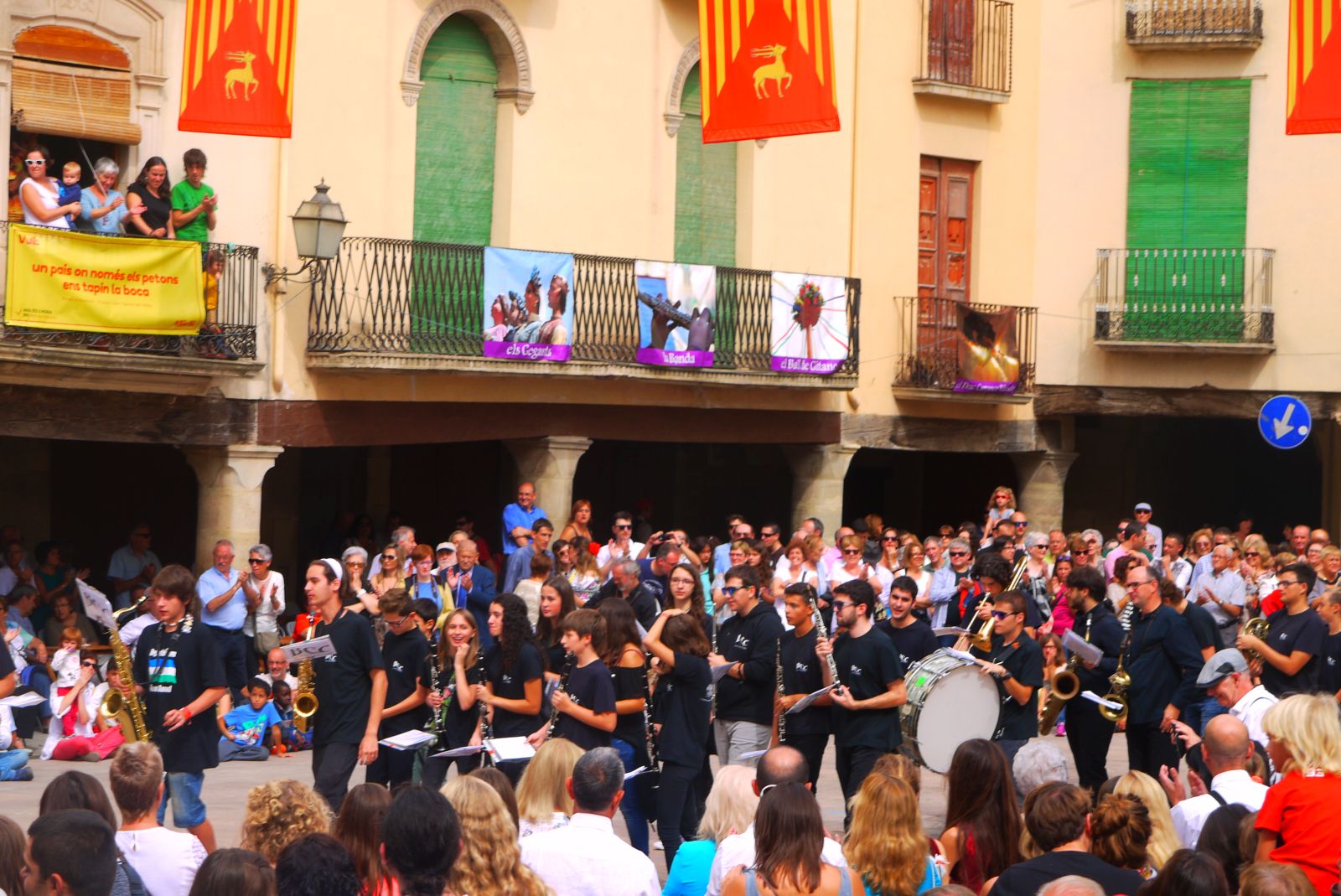La colla de casa nostra, la històrica Jovencells, fa lluïments, destacant-se de les altres, mentre ballen la Sardana de germanor.