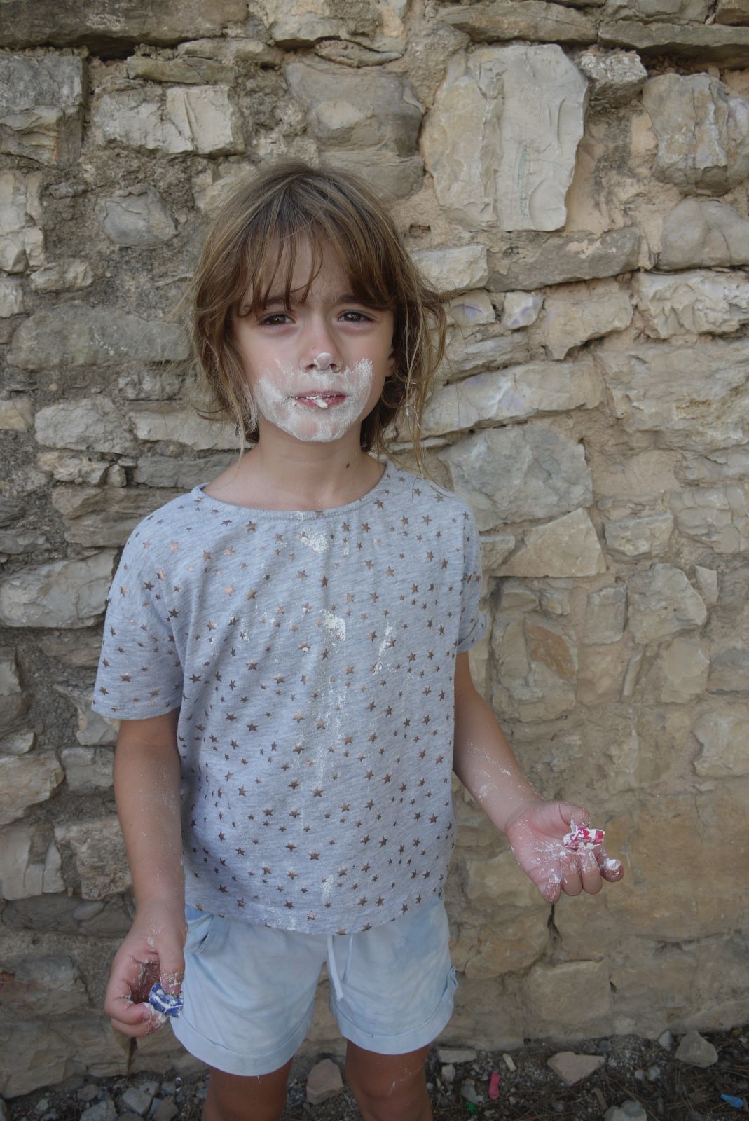 Després d’agafar caramels amb la boca de dins un recipient amb farina…