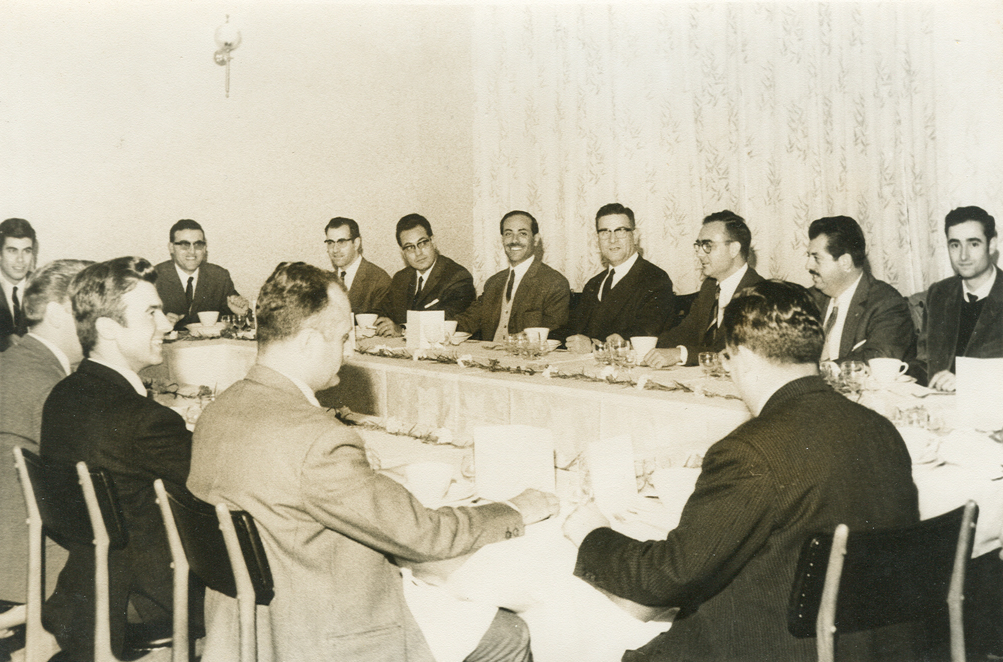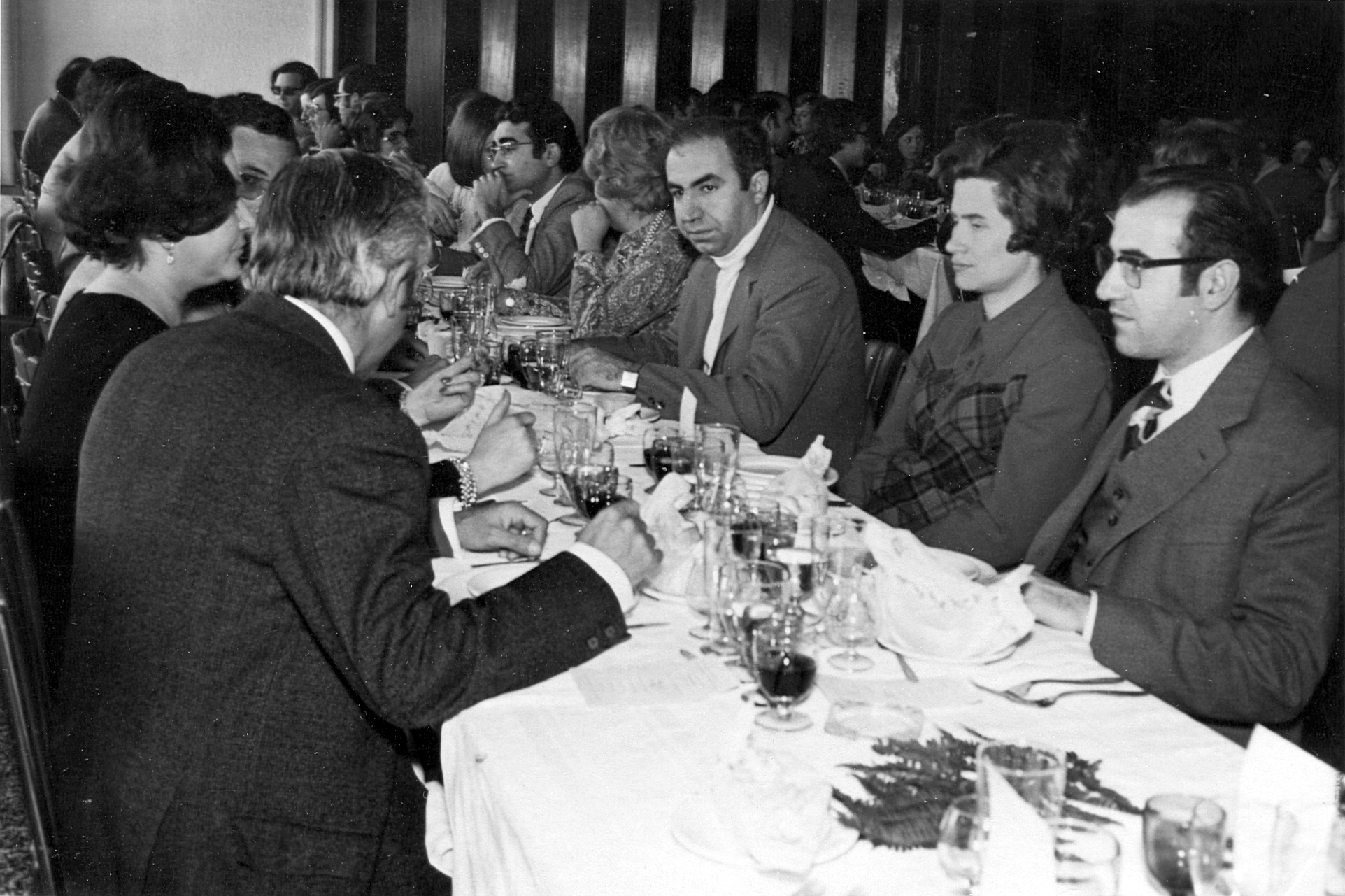 Aquí podem veure el nou Director que va substituir a Faustino millan, Sr Fransoy que parla amb Antonio Puig i la seva muller, Carme Ortiz. Al davant, Josep Mª Trilla i la seva muller, Rosina Fusté.