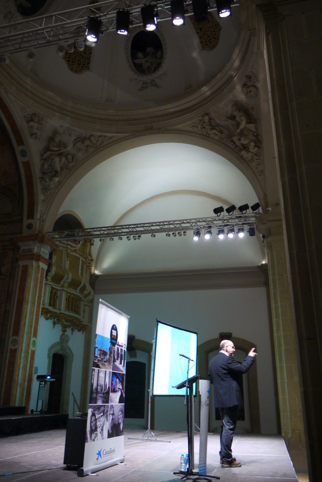 En aquesta imatge podeu veure el ponent impartint la seva conferència al Paranimf de la Universitat de Cervera.