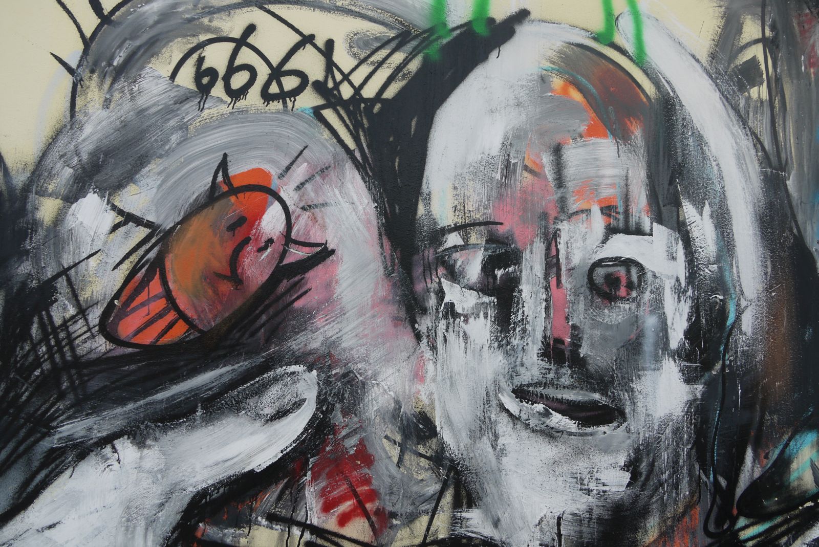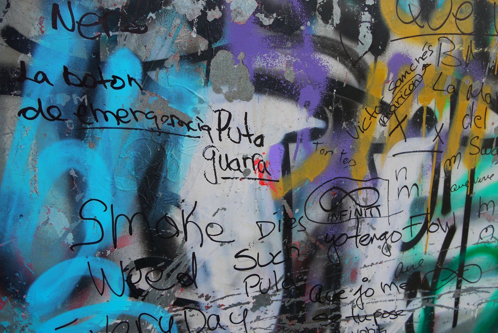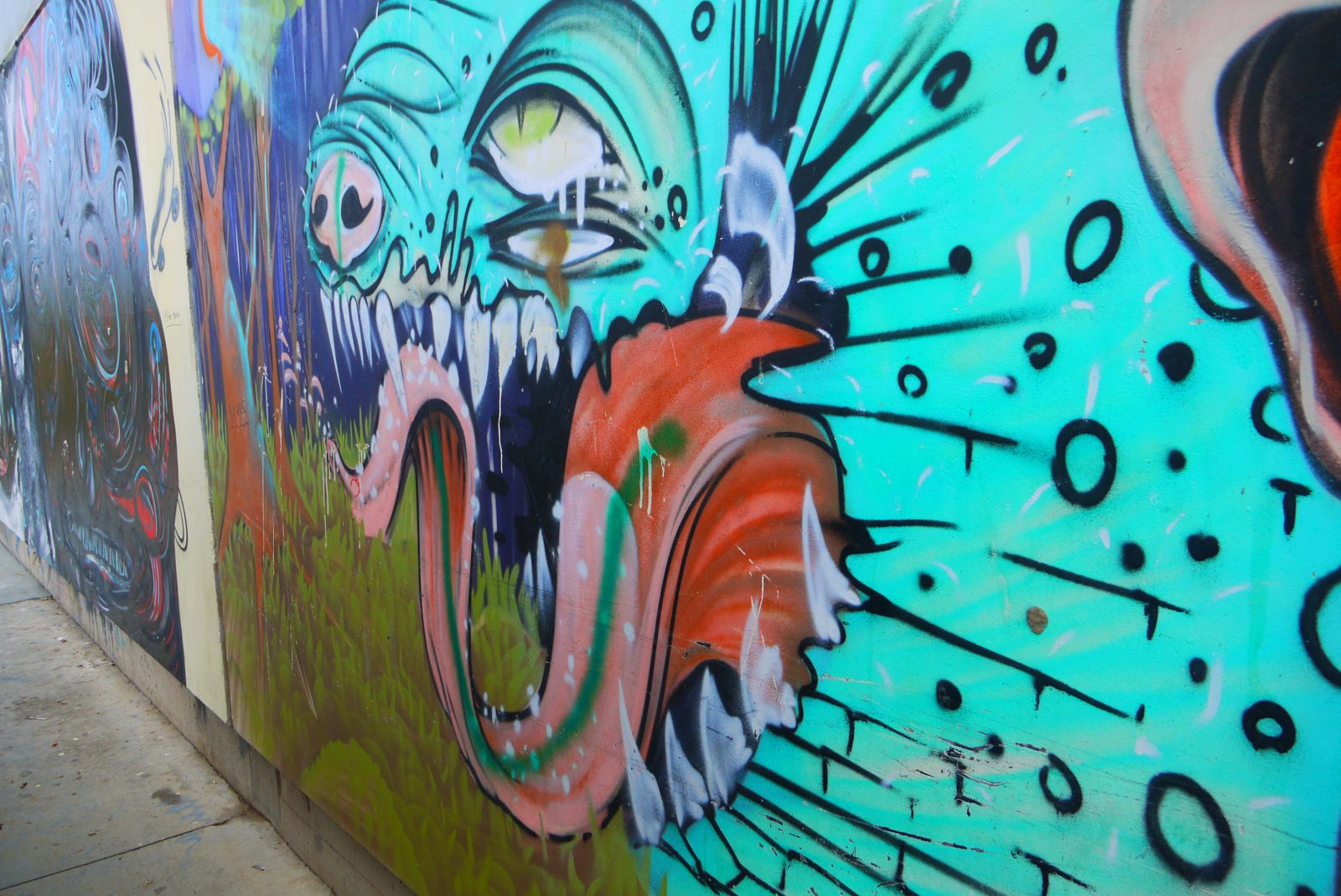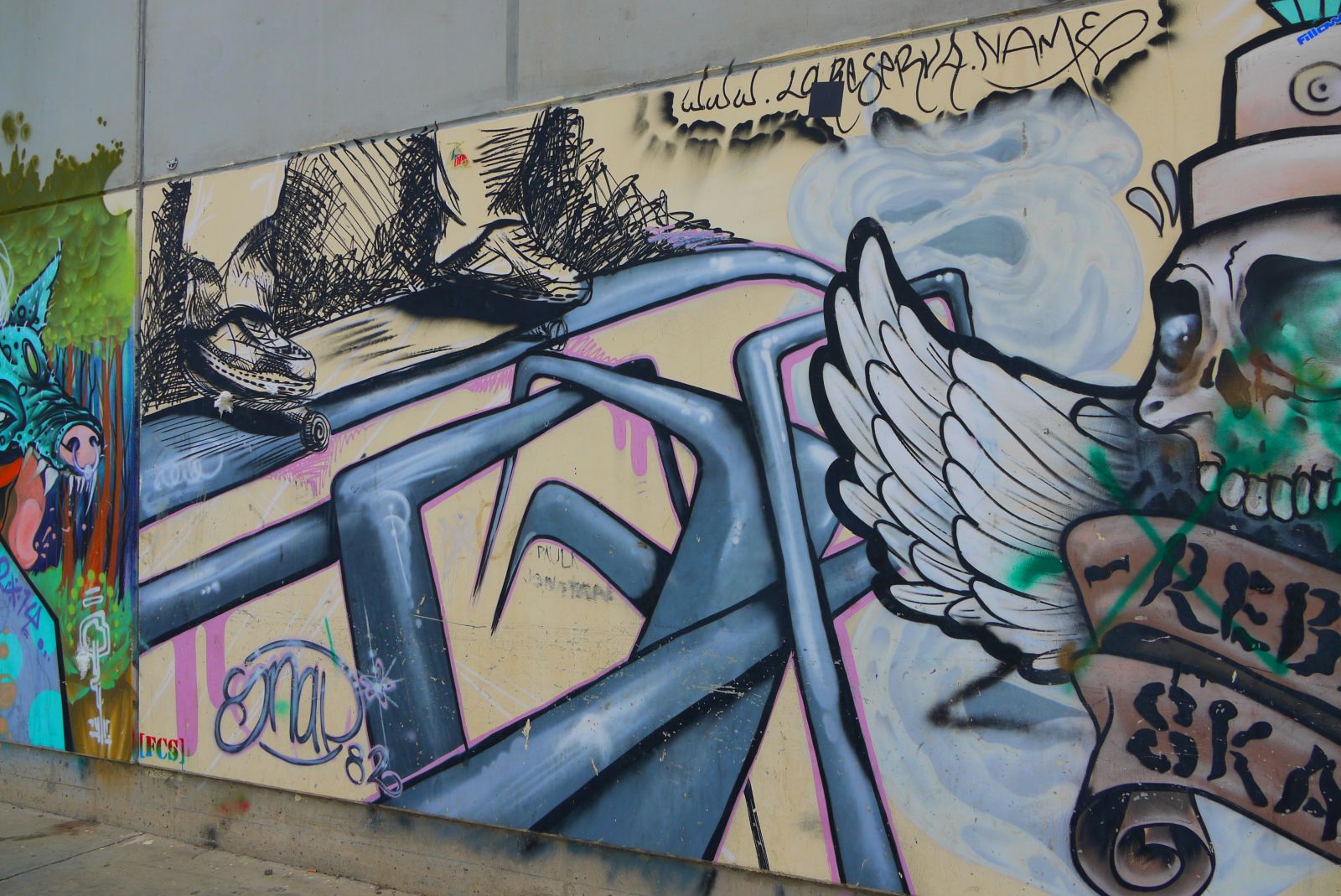 A continuació podeu veure detalls de les pintures que han fet en el mural decoratiu. La calavera sempre és una constant en aquest tipus d’art.