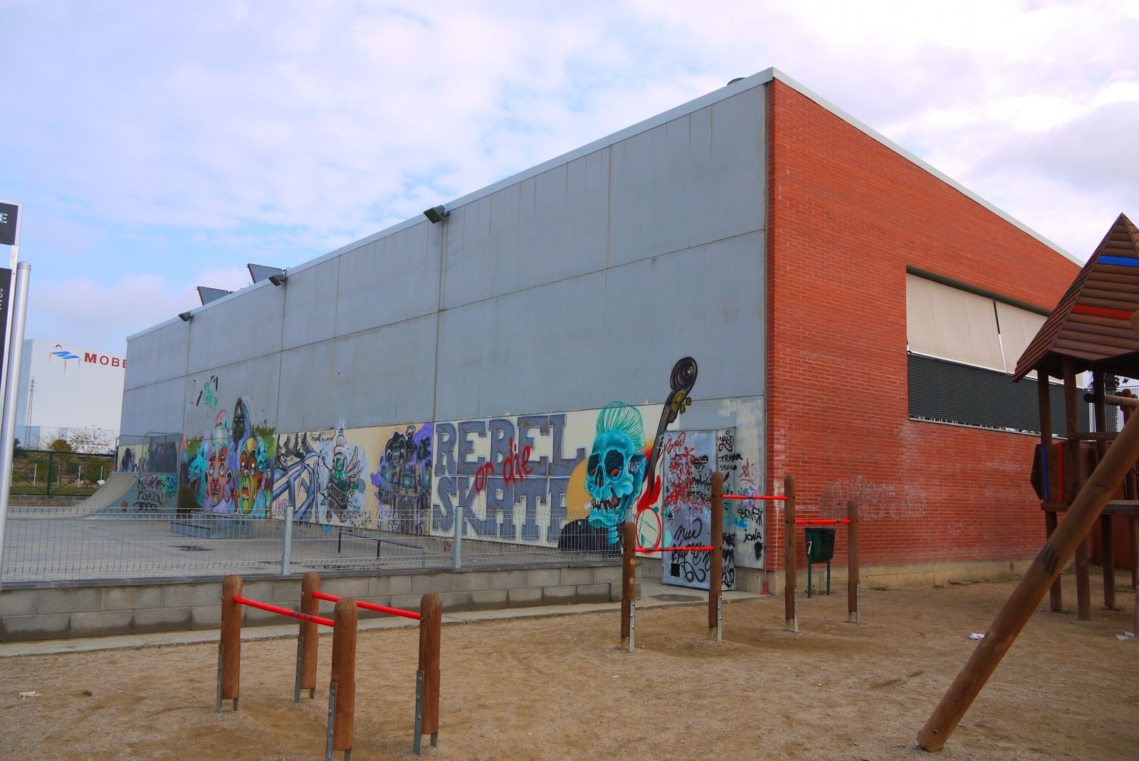 En primer pla, el parc infantil i, al darrera, la pista d’Skate.