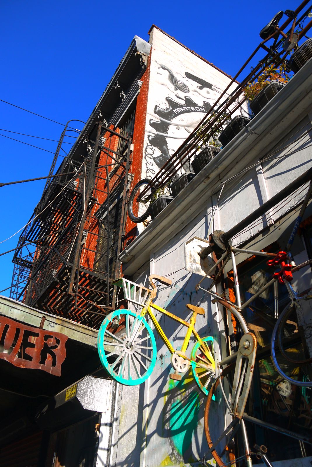Abans d’arribar a l’accés per pujar-hi, es poden admirar tot un seguit d’obres d’art urbà, que queden d’allò tan bé decorant principalment parets laterals d’edificis.