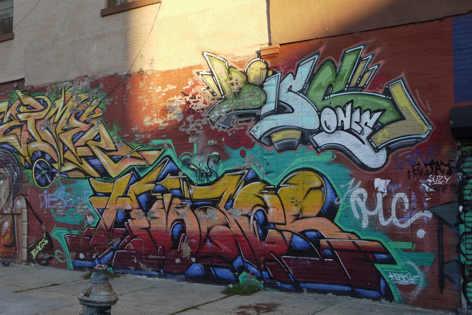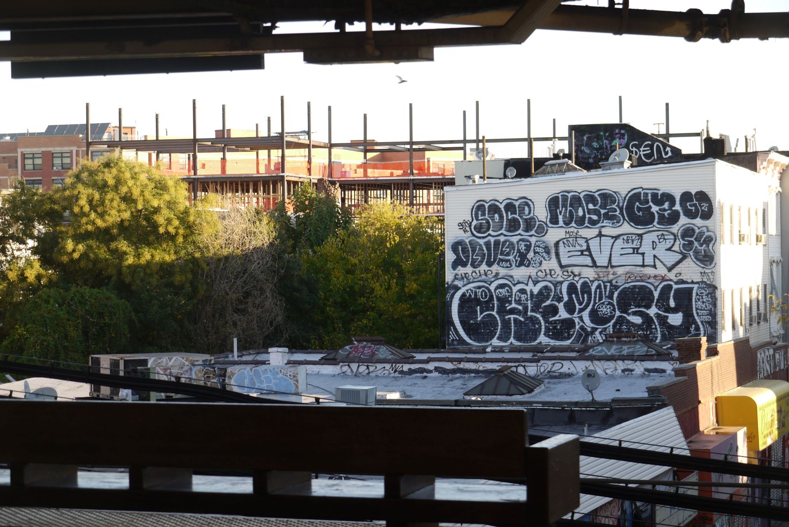 Circular amb aquest metro elevat fa que es vegi la perspectiva de la ciutat d’una manera que a Europa no hi estem avesats. Els grafittis es van repetint arreu.
