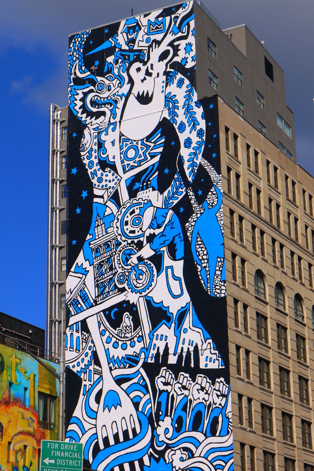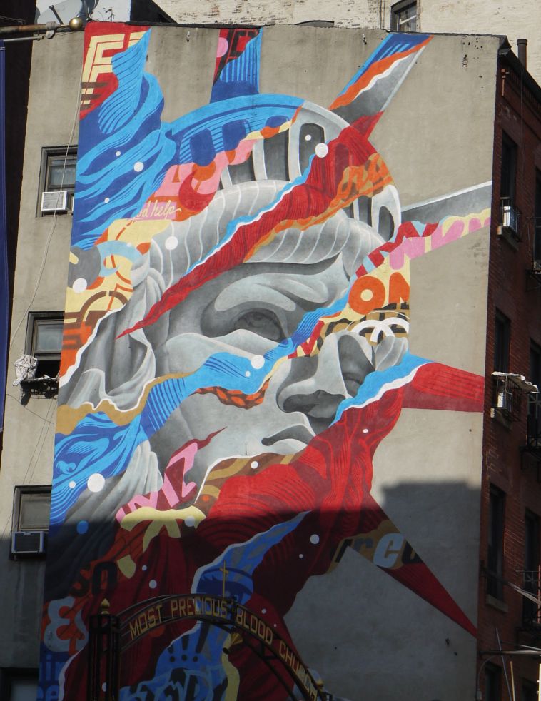 El barri, seguint la tònica d’aquesta ciutat on es pot admirar tant art urbà també exhibia els seus grafittis. Com podeu veure aquest el protagonitza l’estàtua de la Llibertat.