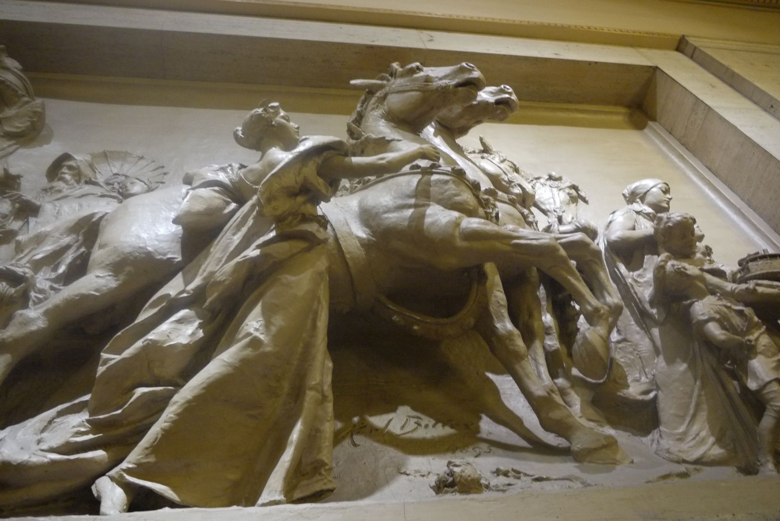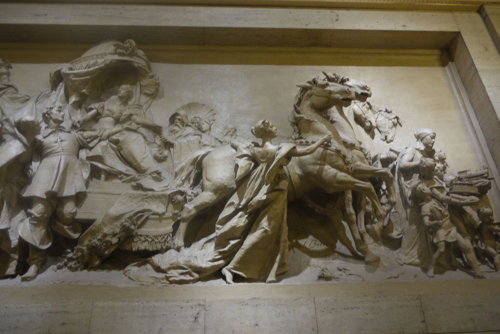 En arribar l’estació et trobes amb una demostació d’art poc habitual en aquests espais. Aquest mural, molt gran, i amb uns relleus considerables resulta ben espectacular. En podeu veure alguns fragments.