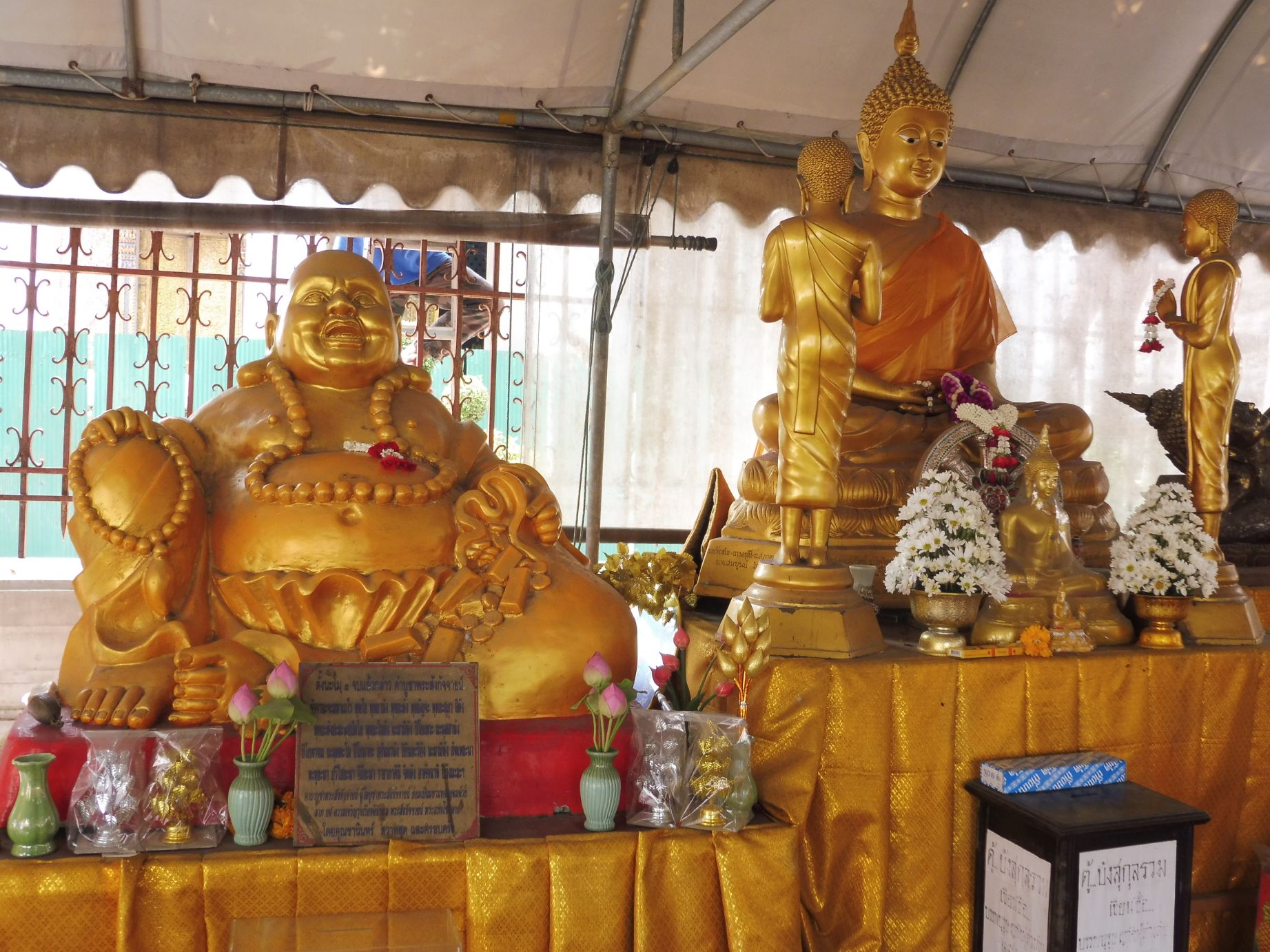 Les figures de Buddha es repeteixen arreu i, la gent, aprofita per fer les seves ofrenes en forma de flors, campanetes i espelmes.