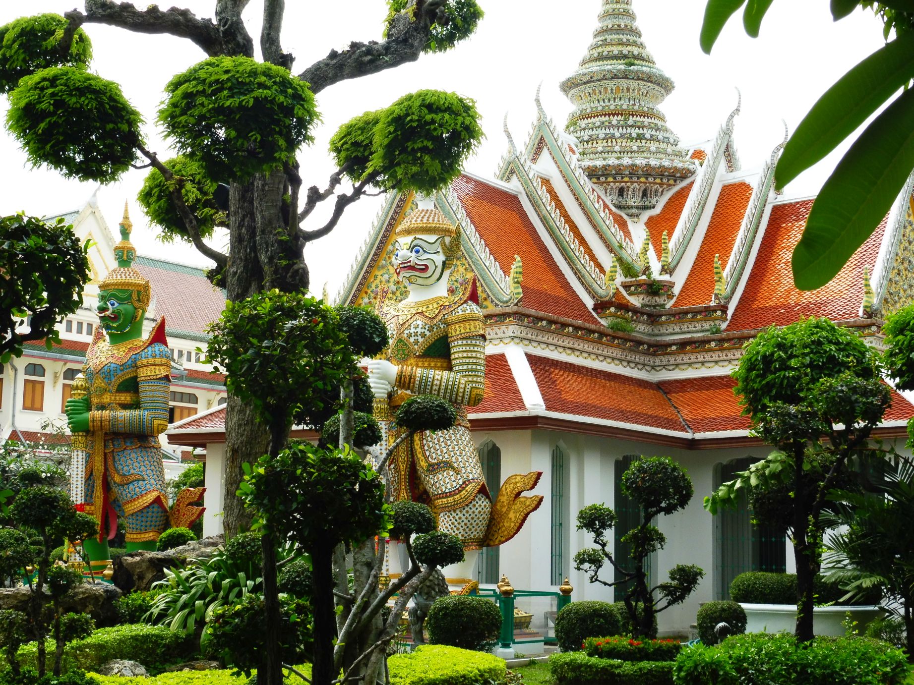 Nombroses figures de pedra embelleixen els patis i, protegides sota els porxos, les figures de Buddha hi són incomptables.