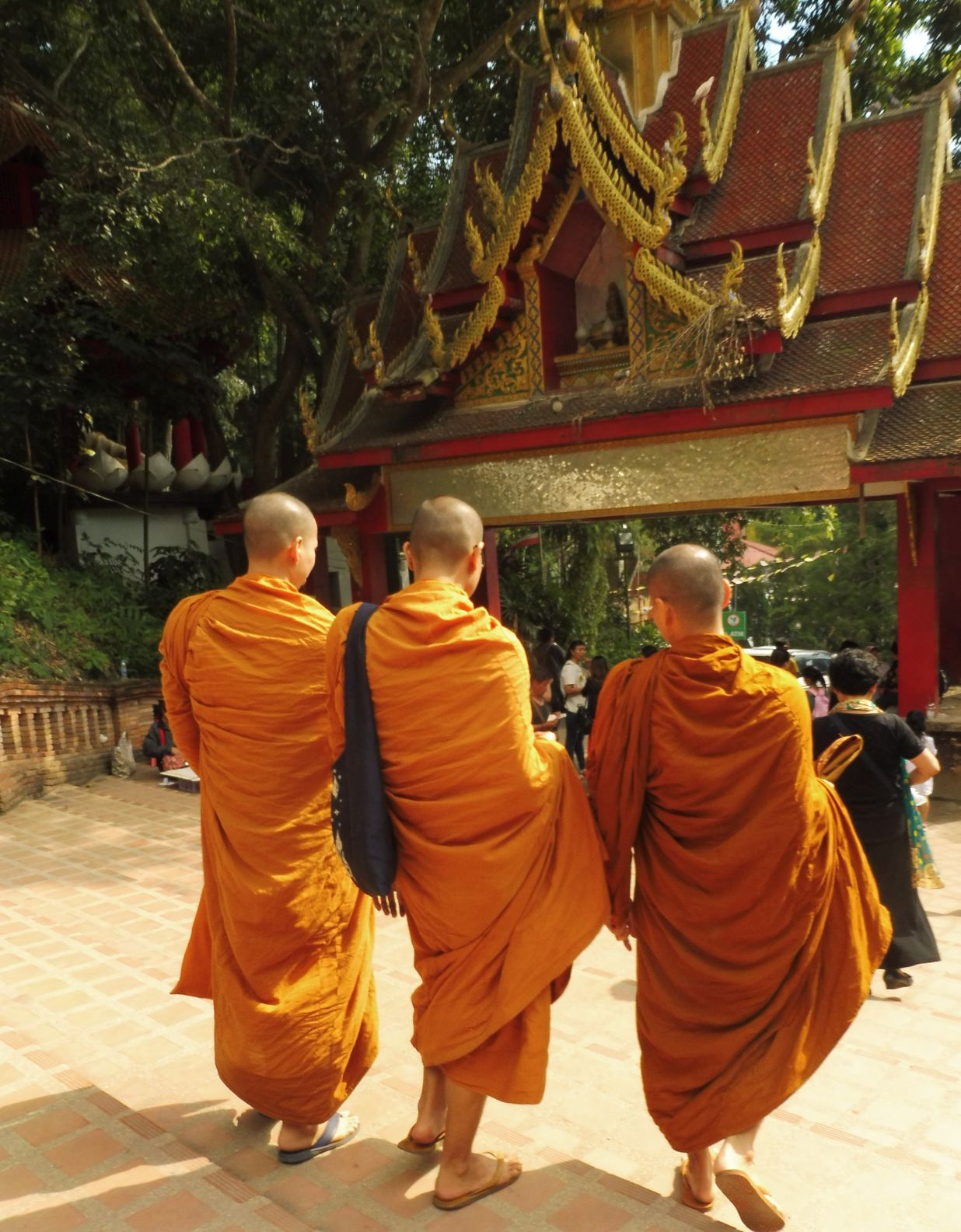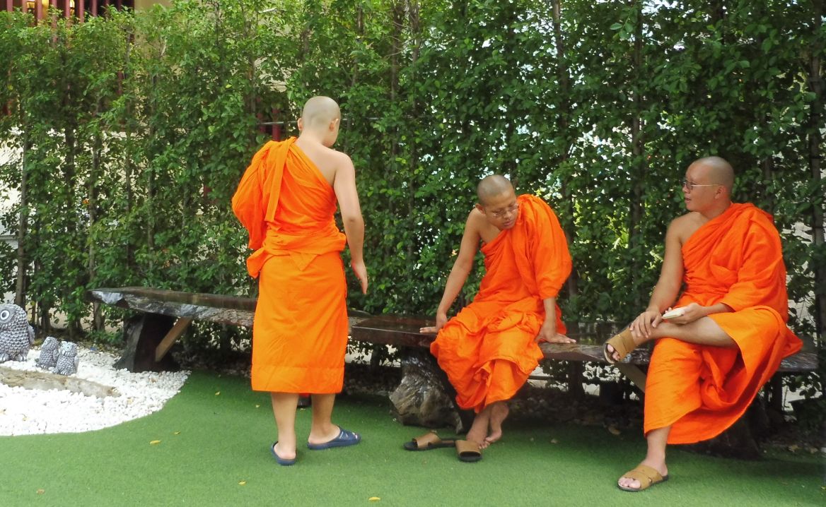 A quasi tots els temples s’hi troben les residències dels monjos que en tenen cura. Els trobes arreu. Formen part del paisatge del país. Amb les seves túniques ataronjades, unes senzilles sandàlies i un sarró penjat a l’espatlla no passen mai desapercubuts tot i que ells no pretenen, de cap manera, cridar l’atenció.