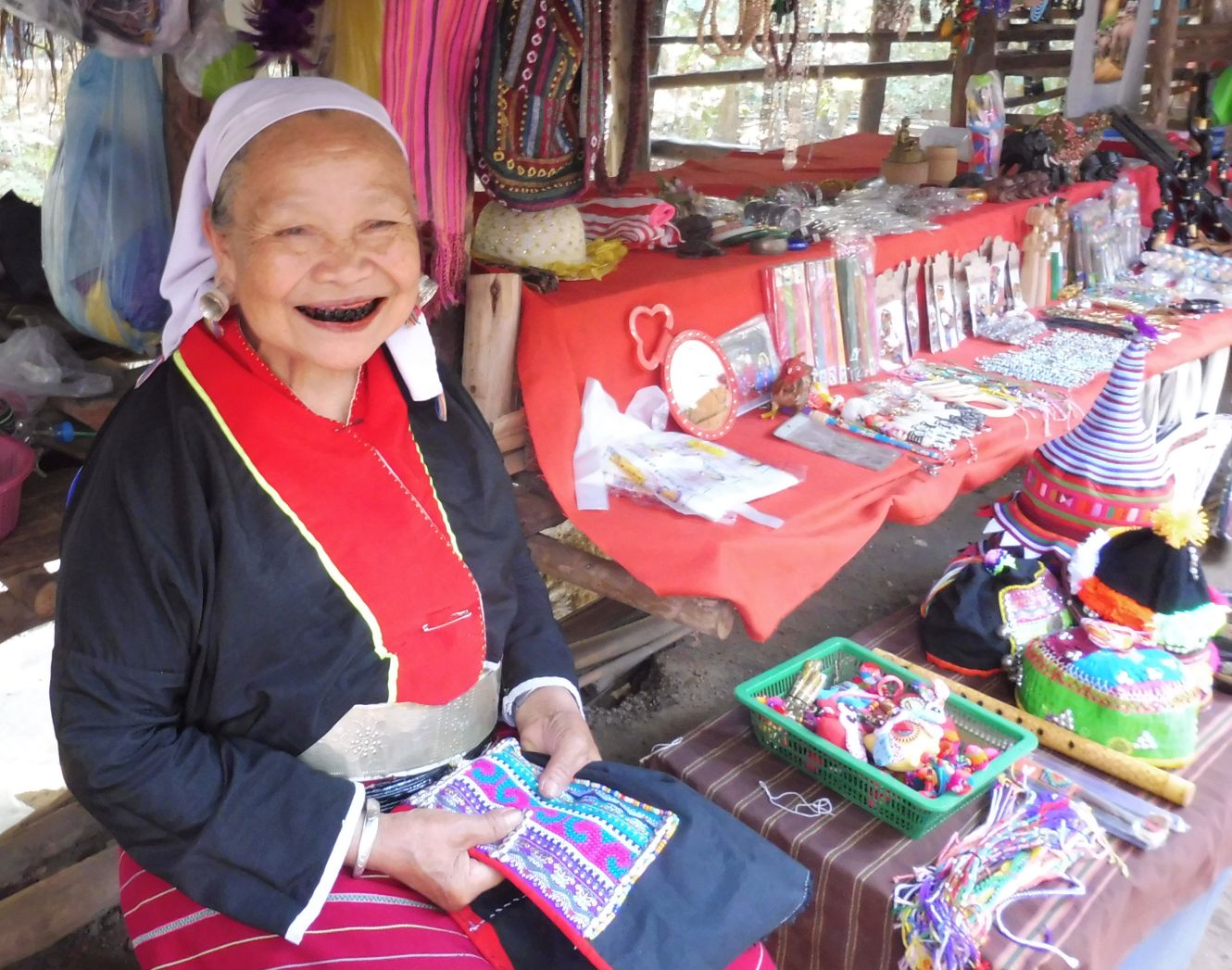 Aquesta simpatiquissima dona mostra ben bé el que porta a la boca. És una sensació molt estranya per nosaltres veure aquesta negror. Ella era un encant!!!!!!