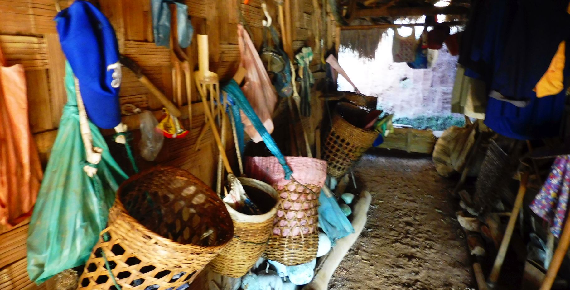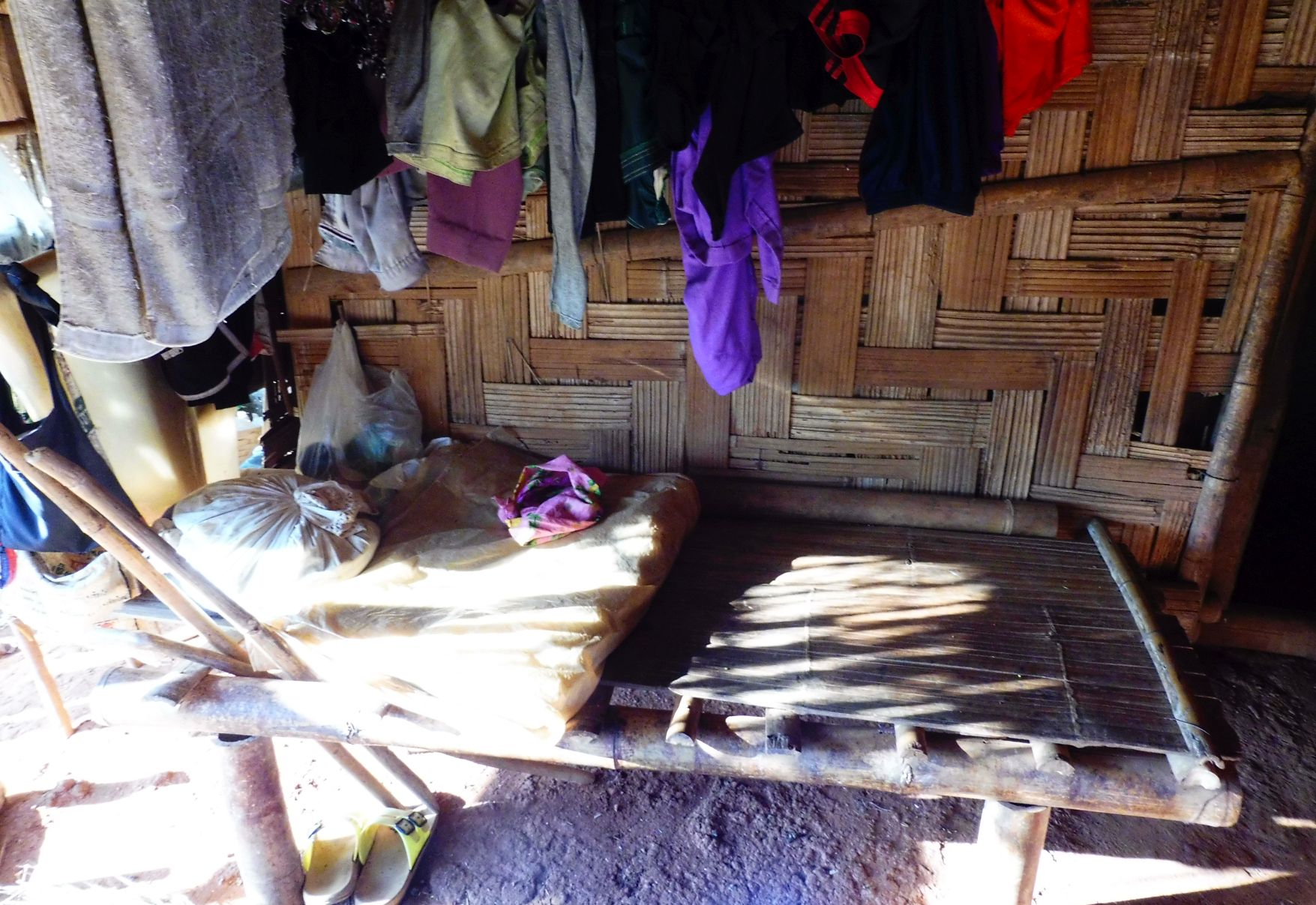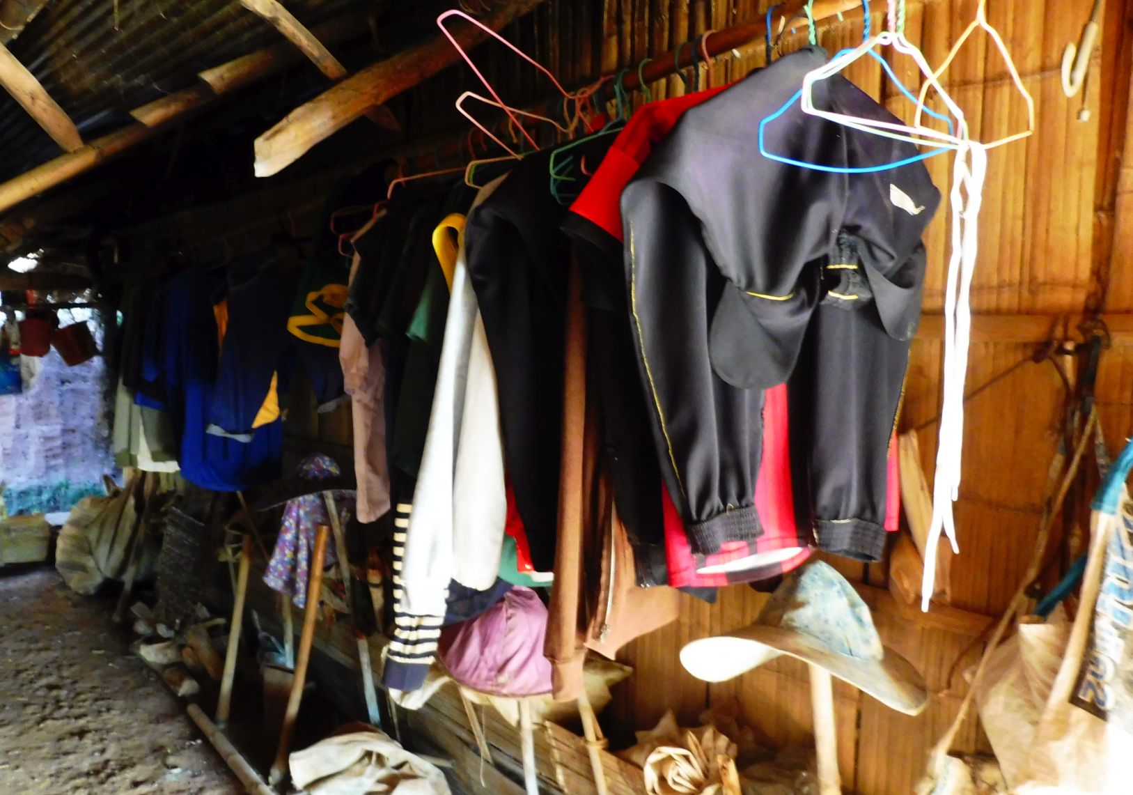 L’interior d’una vivenda. Com podeu veure tot és molt senzill. Uns penjadors fan de suport a la roba en aquest espai que els hi fa d’armari.
