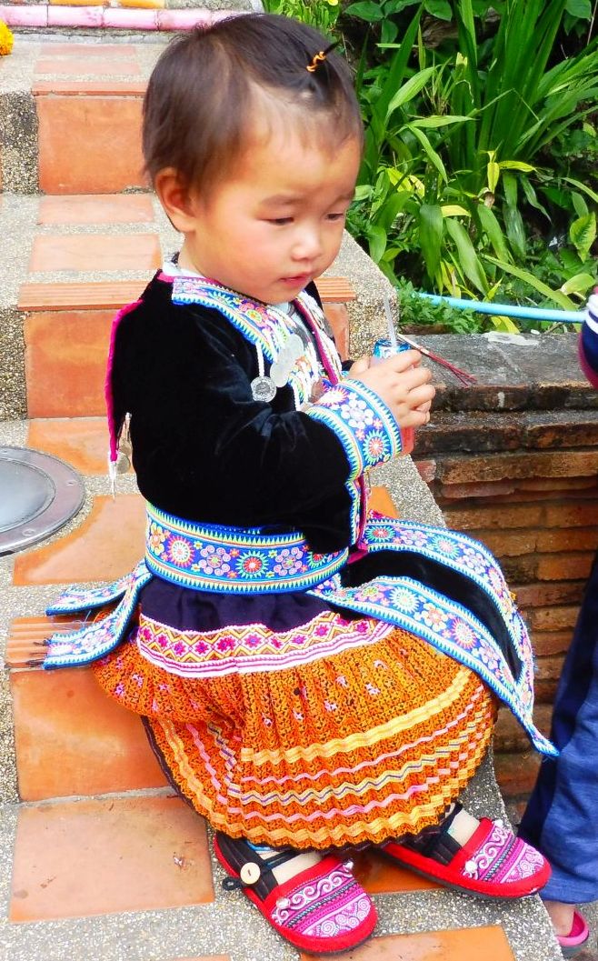 Aquesta neneta va totalment vestida amb les peces tradicionals de la seva ètnia.