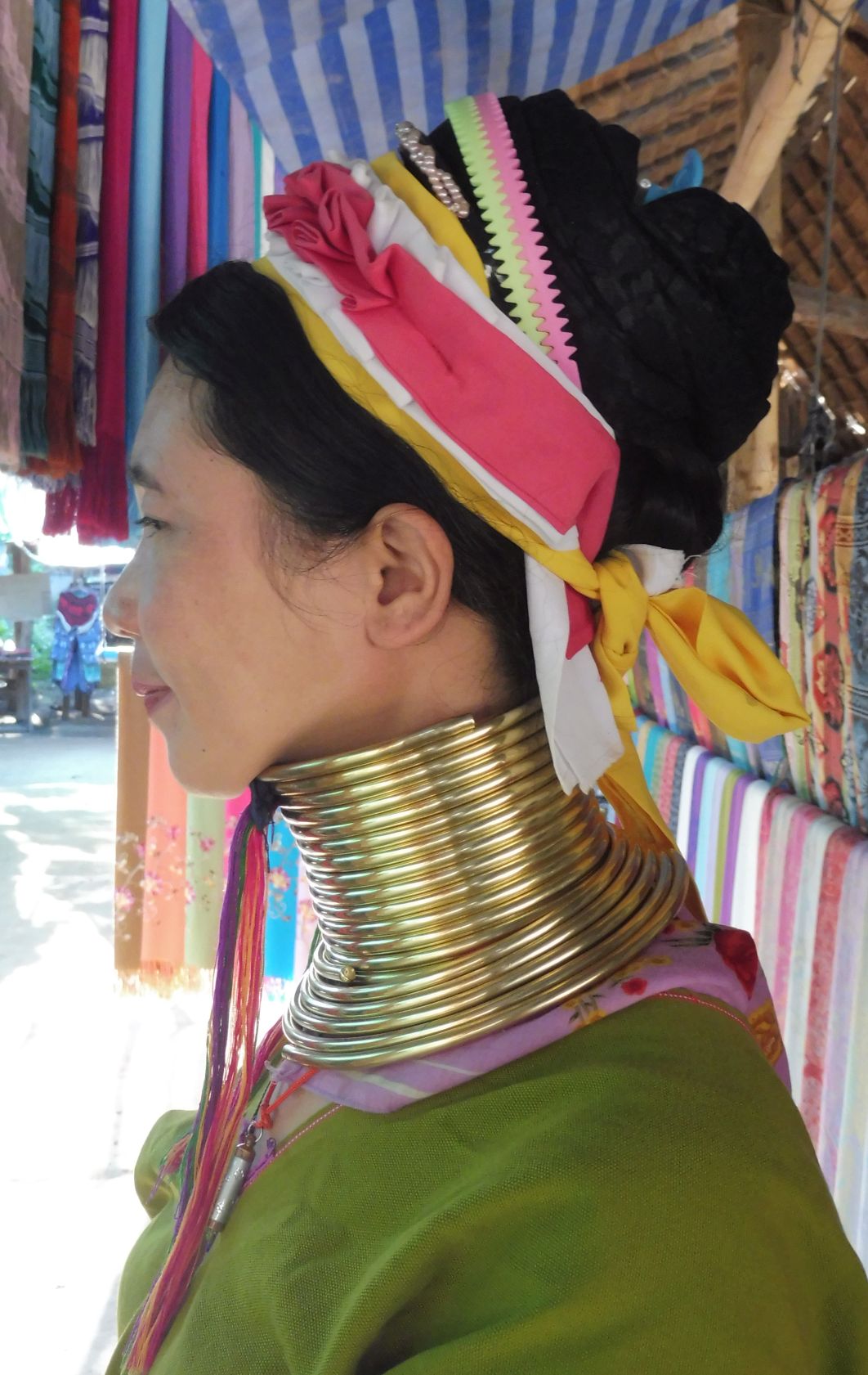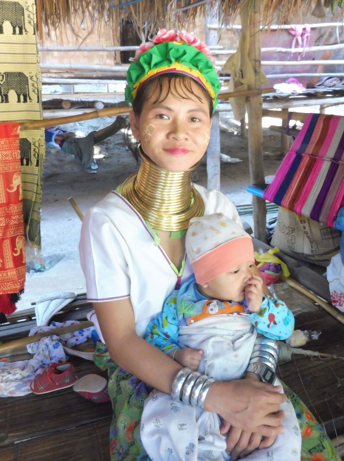 Sempre s’ha sentit parlar de les dones de coll degirafa. Són les dones Kayan que vivien a Myanmar ( antiga Birmània) Birmània. Formen part d’una comunitat amb pocs membres, uns set mil. Encara, al sud d’aquest país, s’hi troben poblats on hi resideixen. A la dècada de 1990 van refugiar-se, per diferències amb el govern de la Junta Militar, al nord-est de Thailàndia.