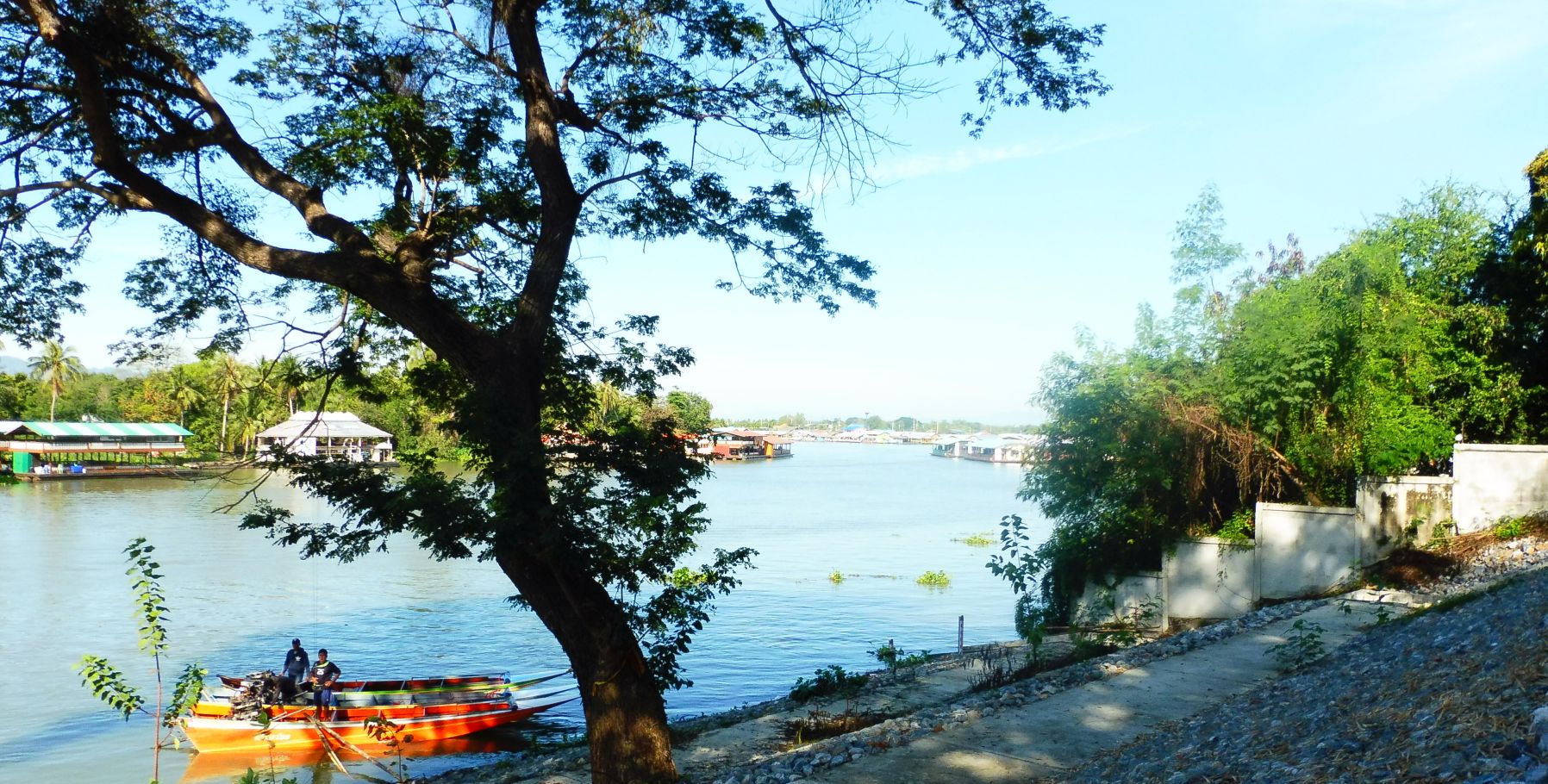 El riu Kwai. Des d’aquesta zona s’agafen embarcacions que et porten al pont.