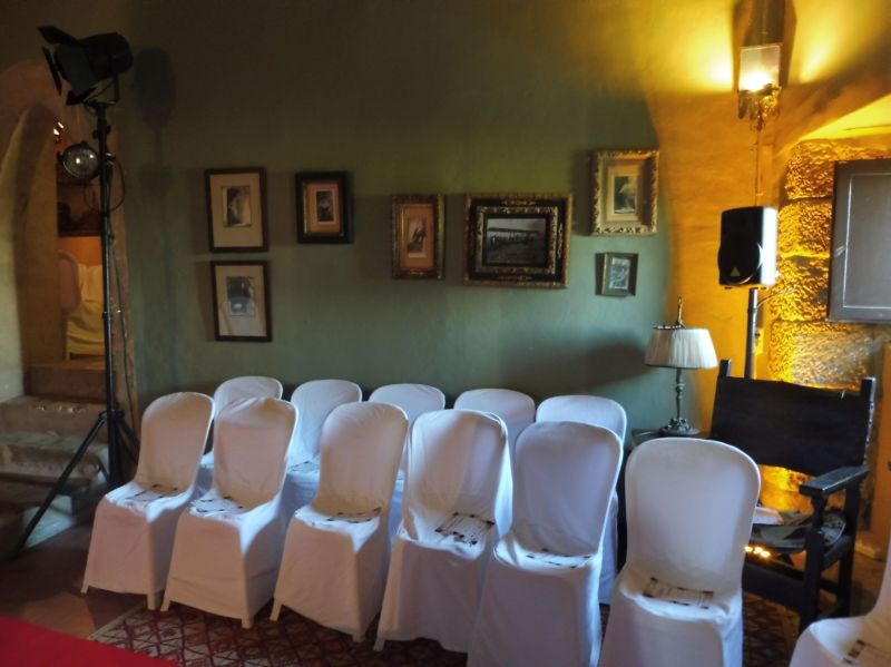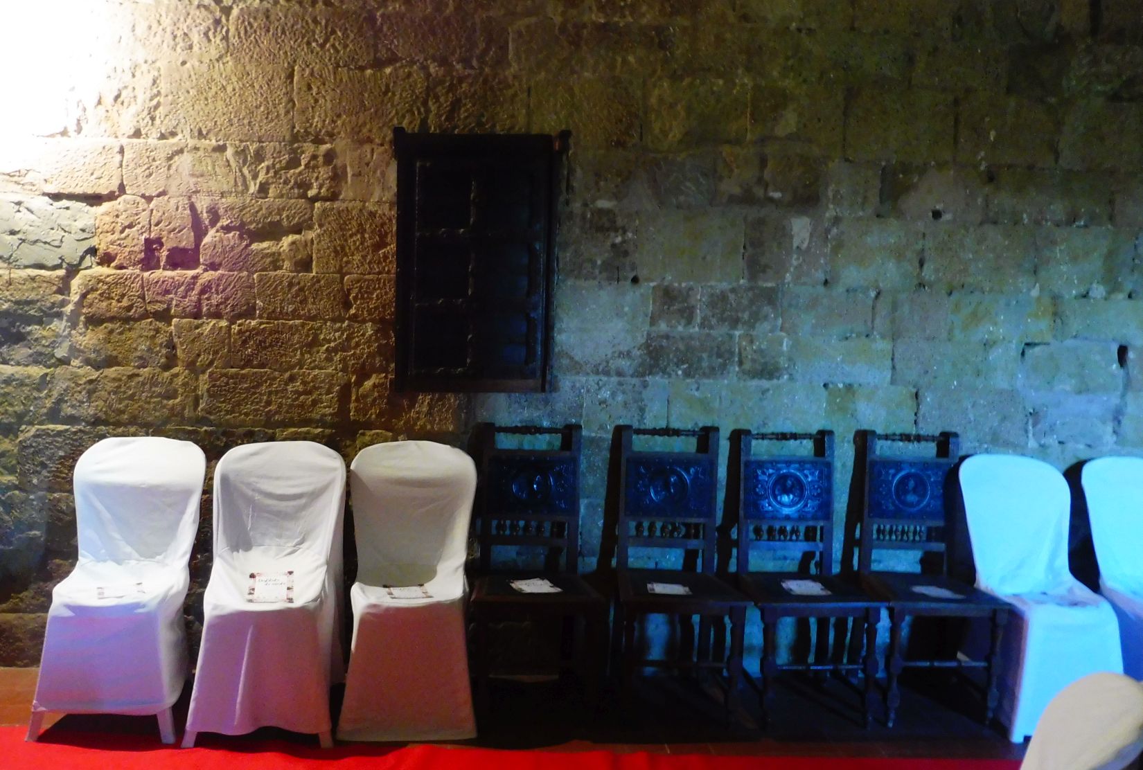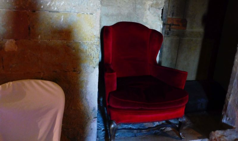 Seients que formen part del mobiliari del castell barrejats amb altres d‘actuals.