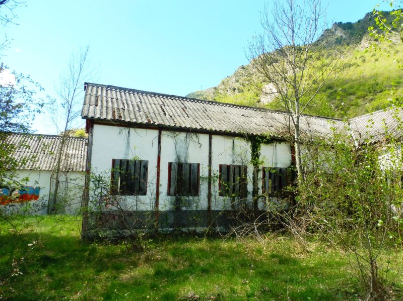Aquestes edificacions encara resten dempeus però estan en mal estat i la vegetació les va conquerint. Fixeu-vos que les teulades són d’uralita, un material que ara està totalment prohibit.