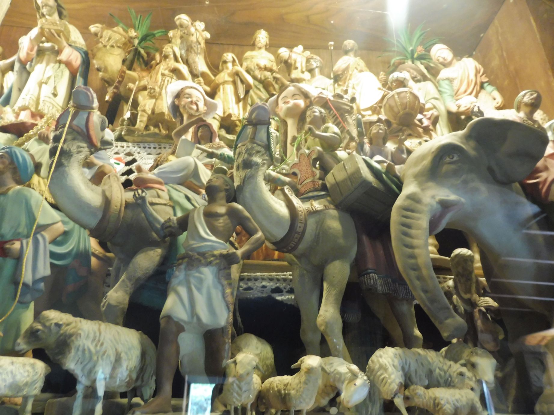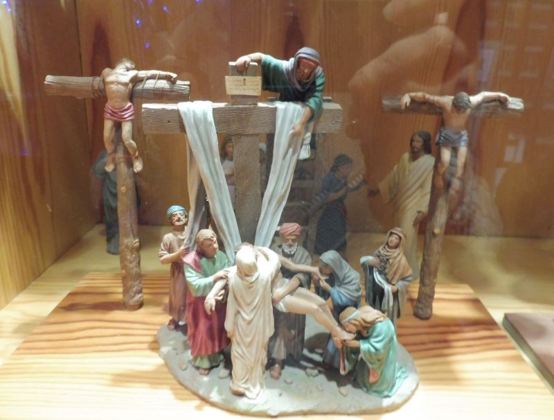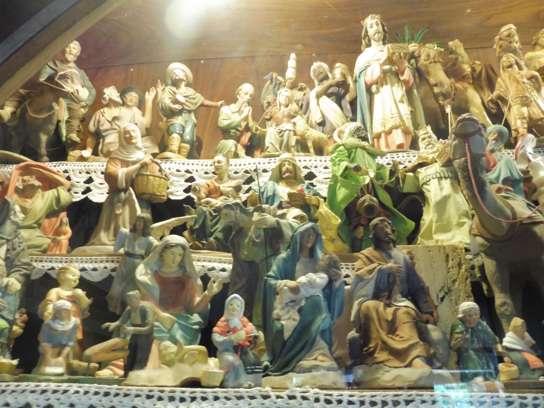 En aquesta vitrina tan gran s’hi encabeixen una quantitat important de figures de pessebre, ben valuoses, ja que moltes d’elles són de reconeguts artesans.