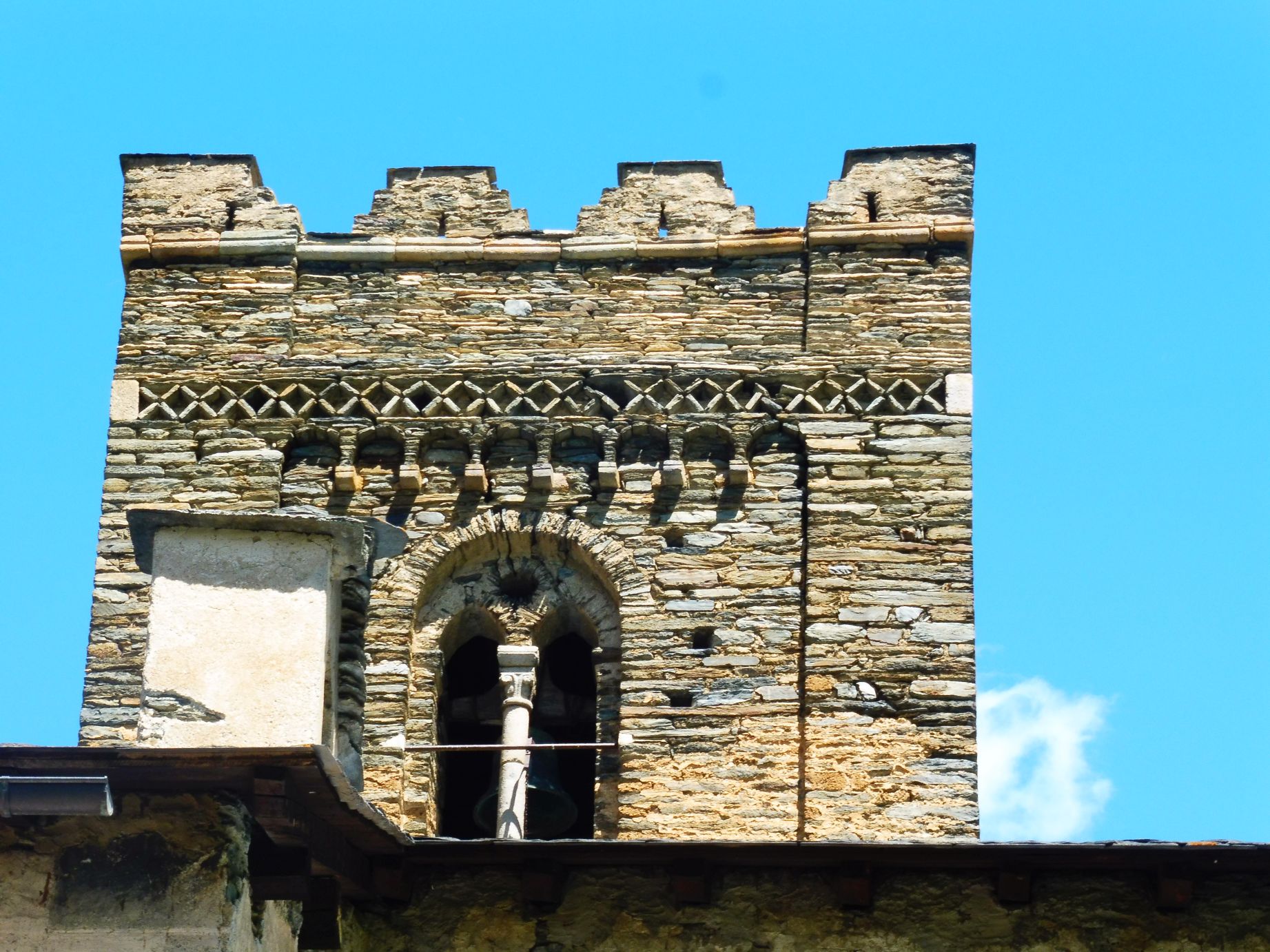 Aquest campanar, diferent de molts altres, té el seu acabat que s’assembla més a un castell que a un cloquer.