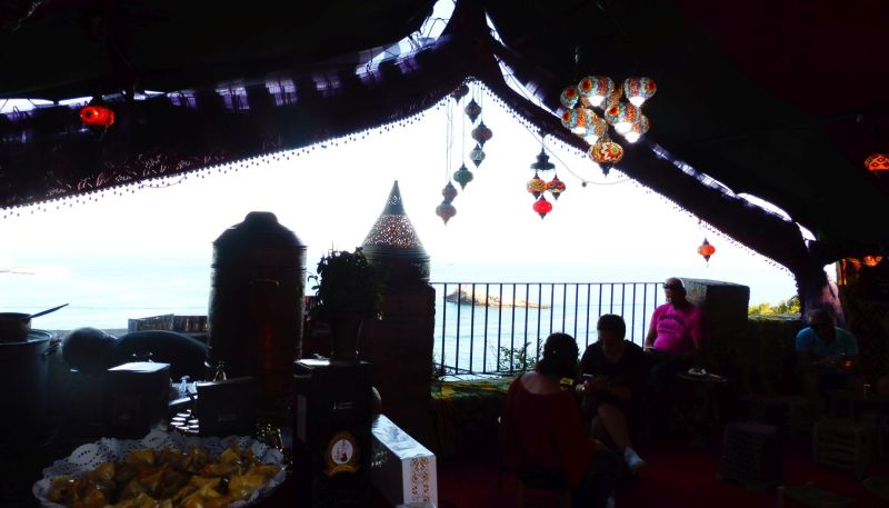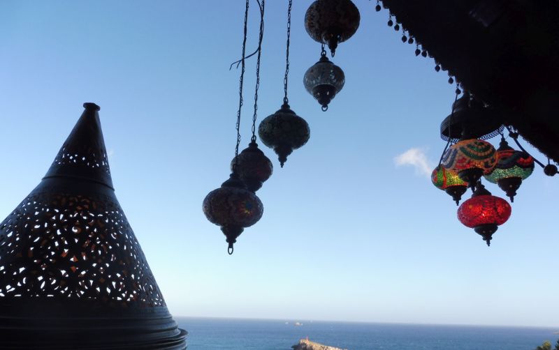 Aquestes peces orientals vistes en contrallum contrasten amb el perfecte blau Mediterrà.