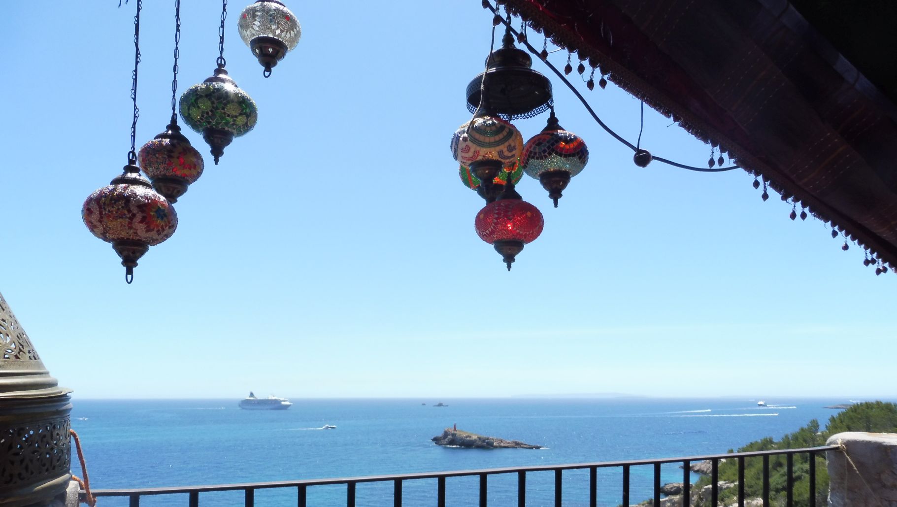 Aquestes peces orientals vistes en contrallum contrasten amb el perfecte blau Mediterrà.
