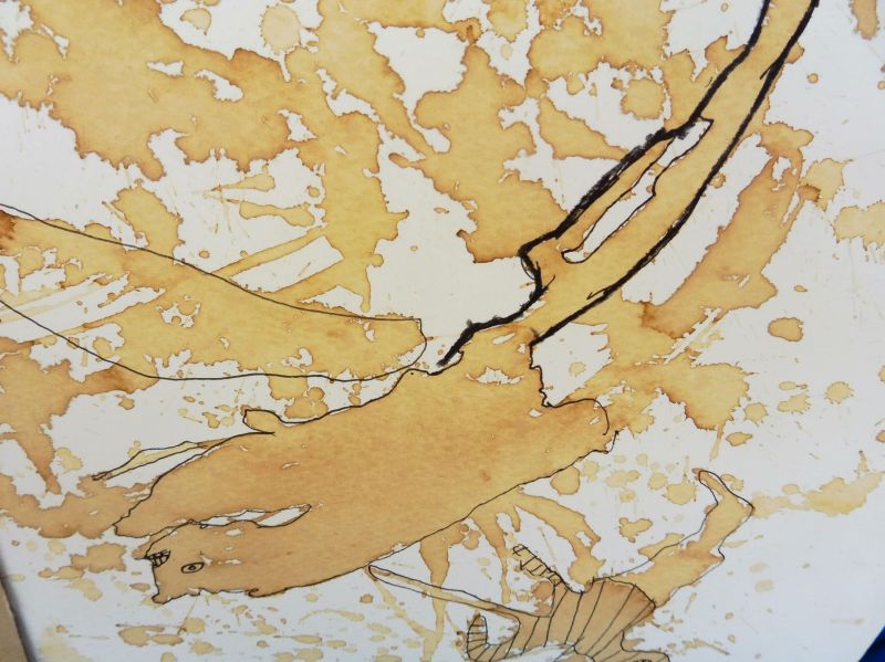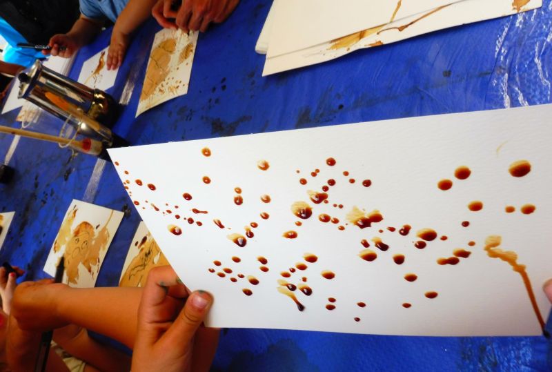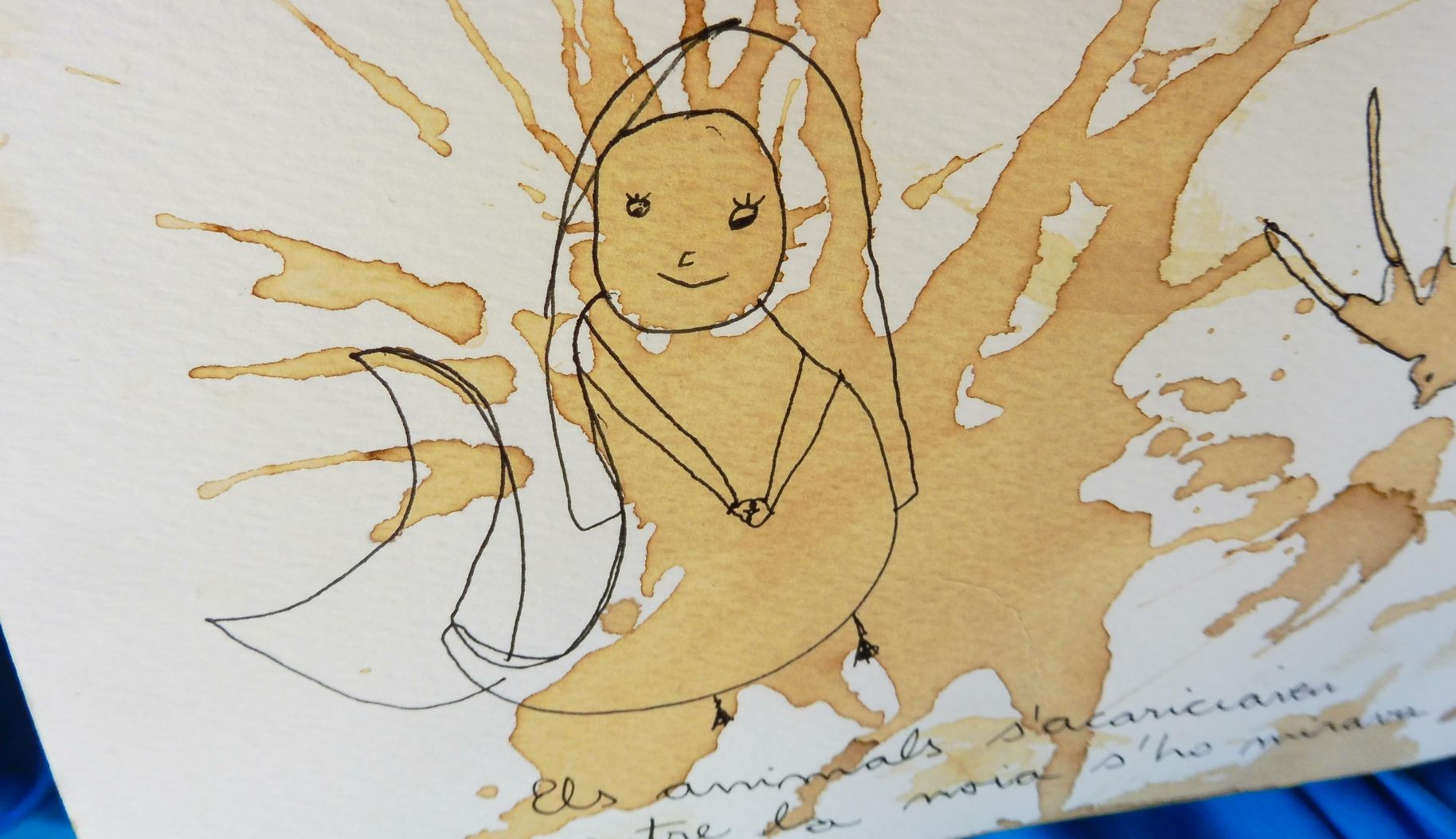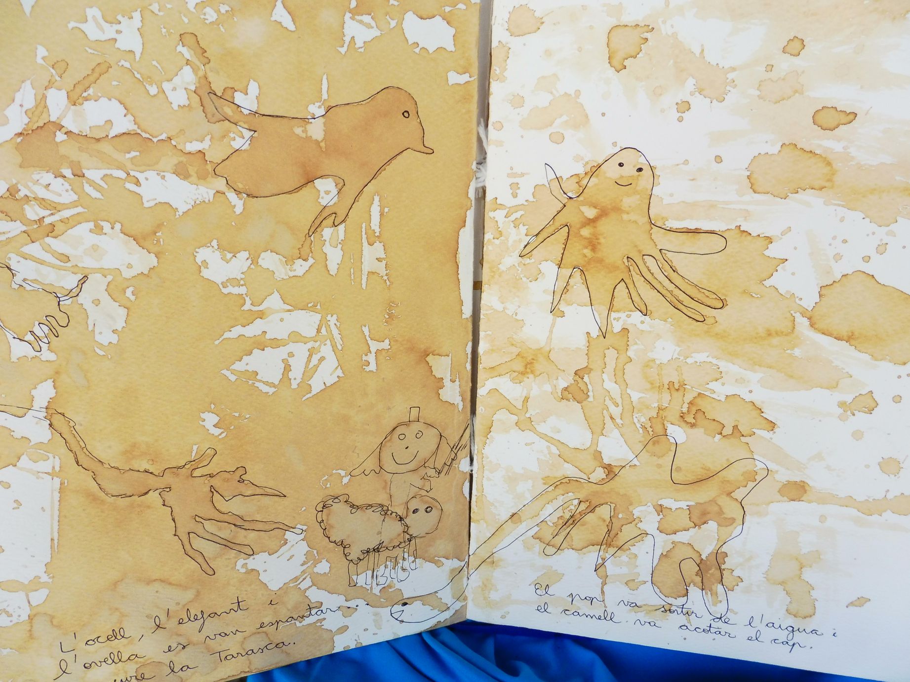Resulta que es van facilitar cafeteres als centres educatius i, amb les taques de cafè que quedaven als fulls, els nens i nenes havien d’imaginar el conte. Una idea ben original i del tot innovadora. . Damunt d’aquest cafè escampat s’hi podien veure els dibuixos i el text.