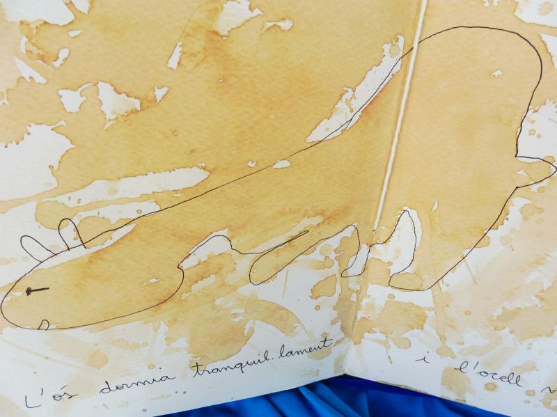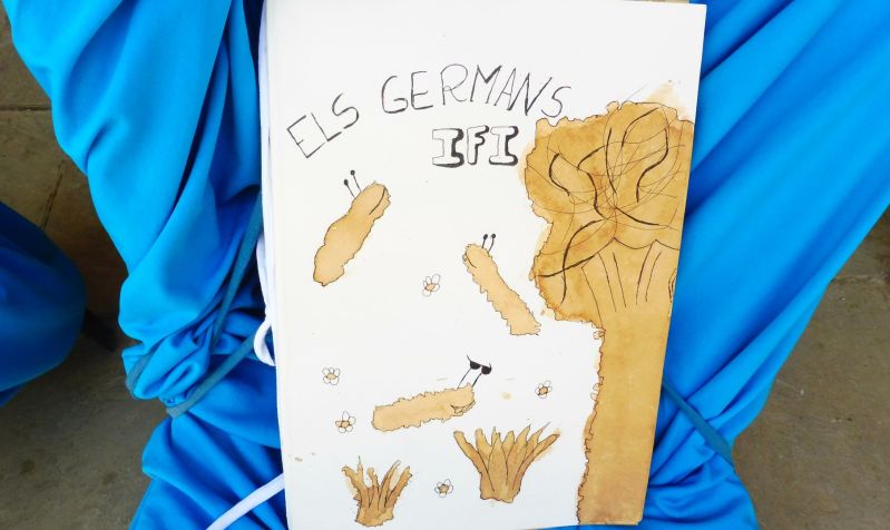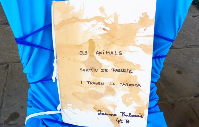 Els contes que cada escola havia fet tenien un aspecte especial pel tipus de tècnica emprada. És difícil d’endevinar amb que estava fet aquest fons de tons marronosos.
