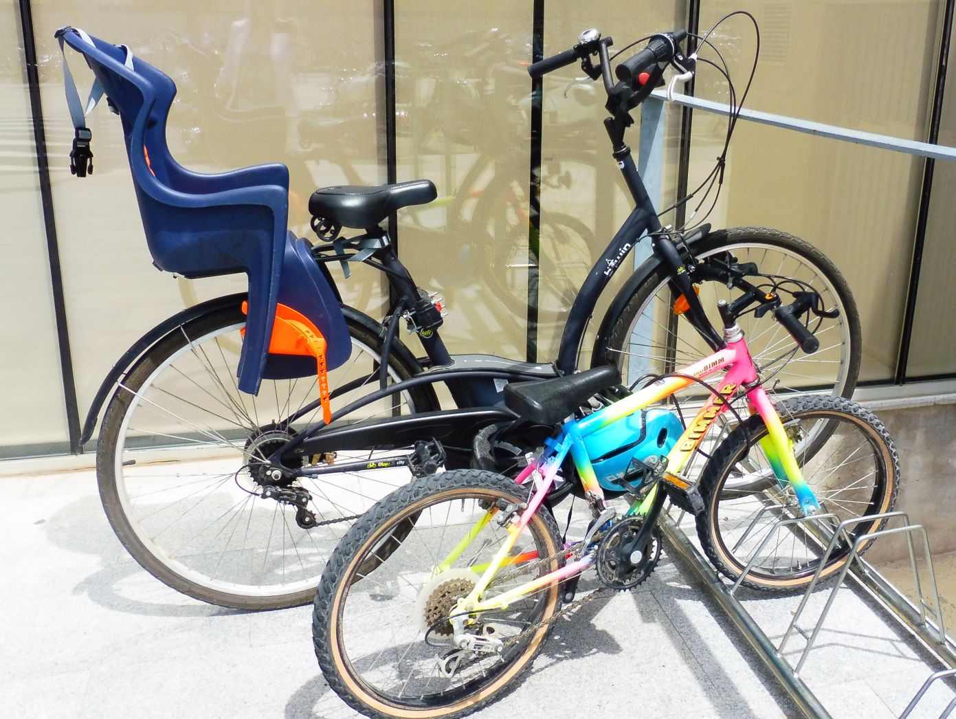 La moto no és apta per portar els més petits. En canvi la bicicleta esdevé un mitjà de transport del tot familiar com podem veure en aquestaa fotografia.