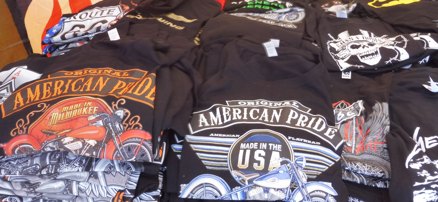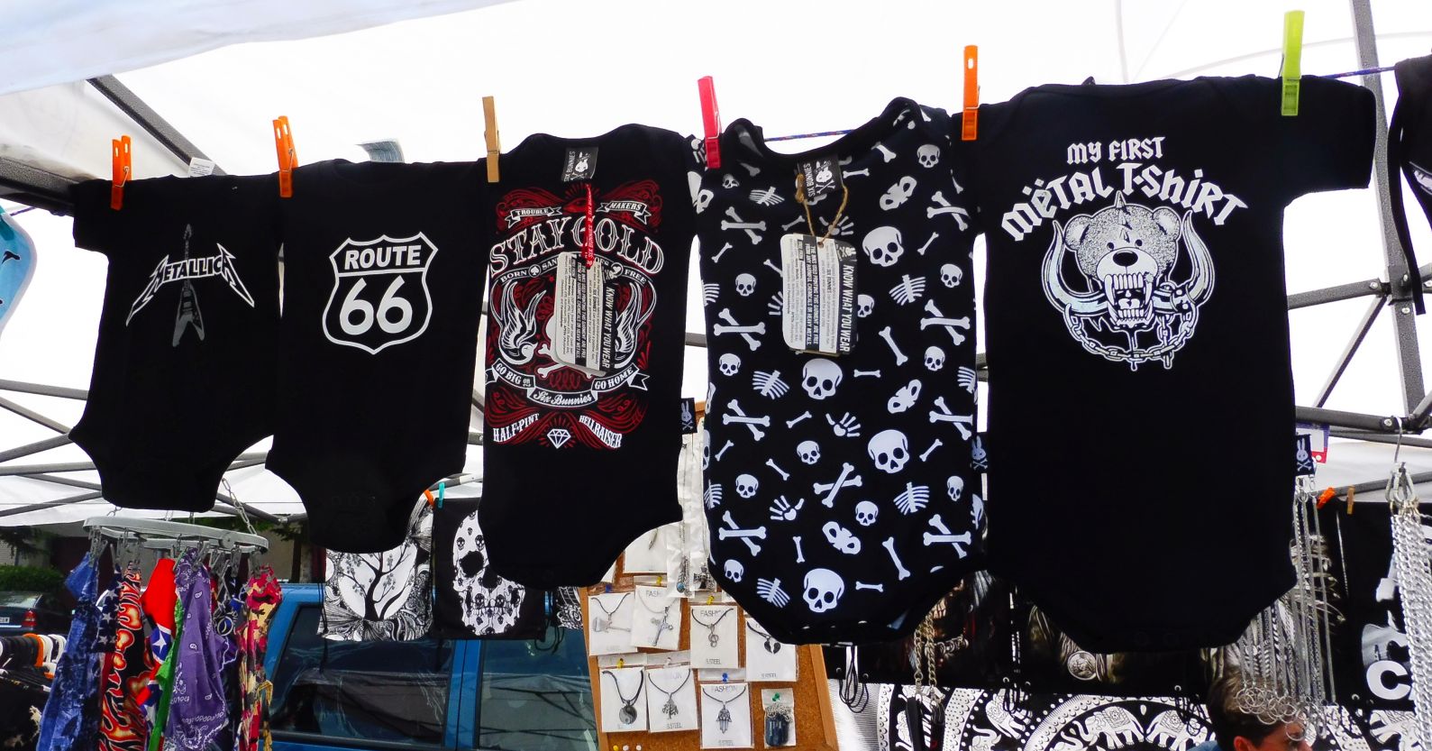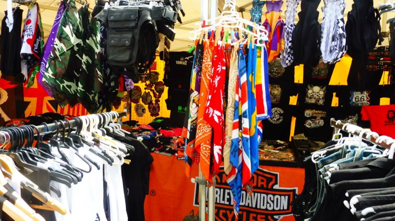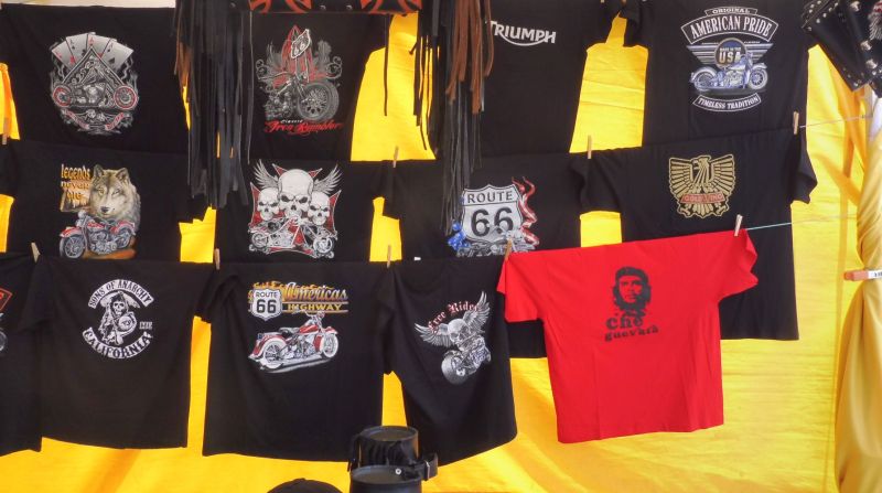 Les parades de roba mostren un tipus de samarretes vinculades del tot amb l’estètica dels moters.
