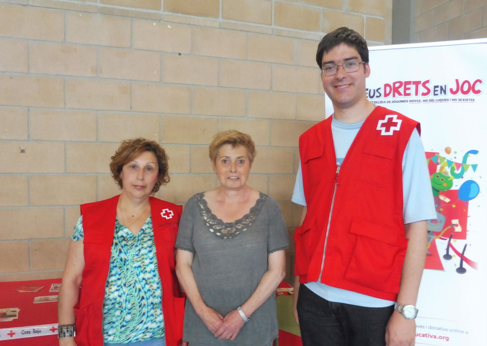 El president i dues voluntàries que estaven al pavelló ja que, Creu Roja, sempre fa acte de presència en aquests esdeveniments per si hi ha alguna urgència.