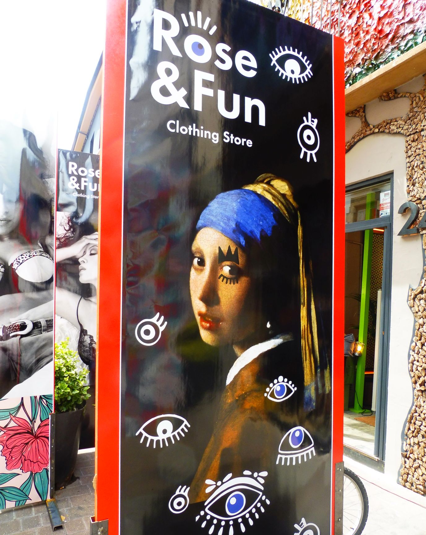 Per acabar, voldria destacar la decoració exterior d’aquest establiment que fa poc ha obert les seves portes al centre de Palafrugell ja que em va meravellar. Amb el nom de Rose and Fun criden l’atenció els colors de la façana que és del tot espectacular.