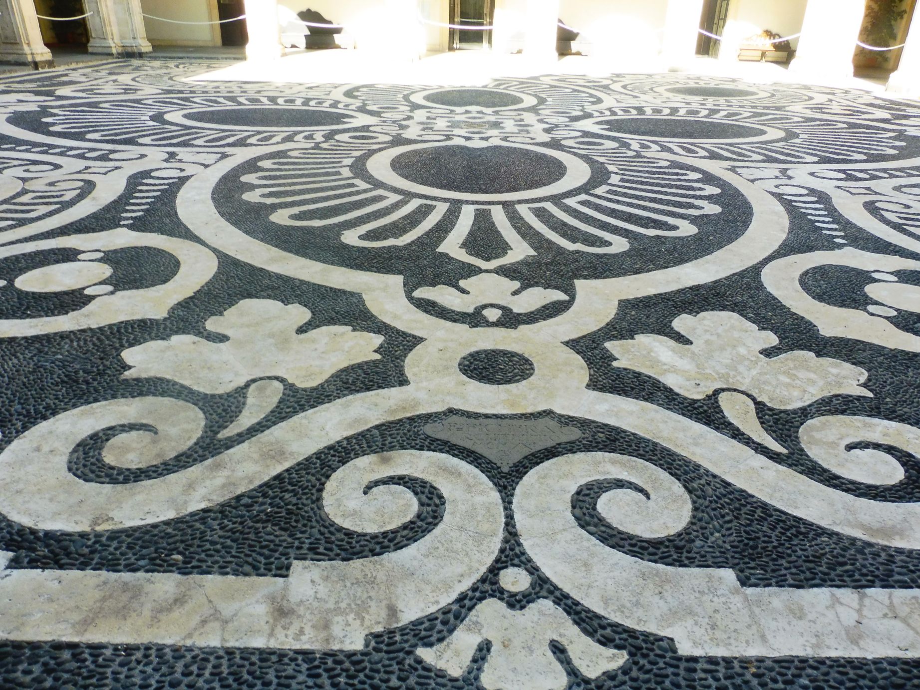 Com podeu veure en aquest terra del pati de la Universitat, el color gris de la pedra volcànica, es repeteix.