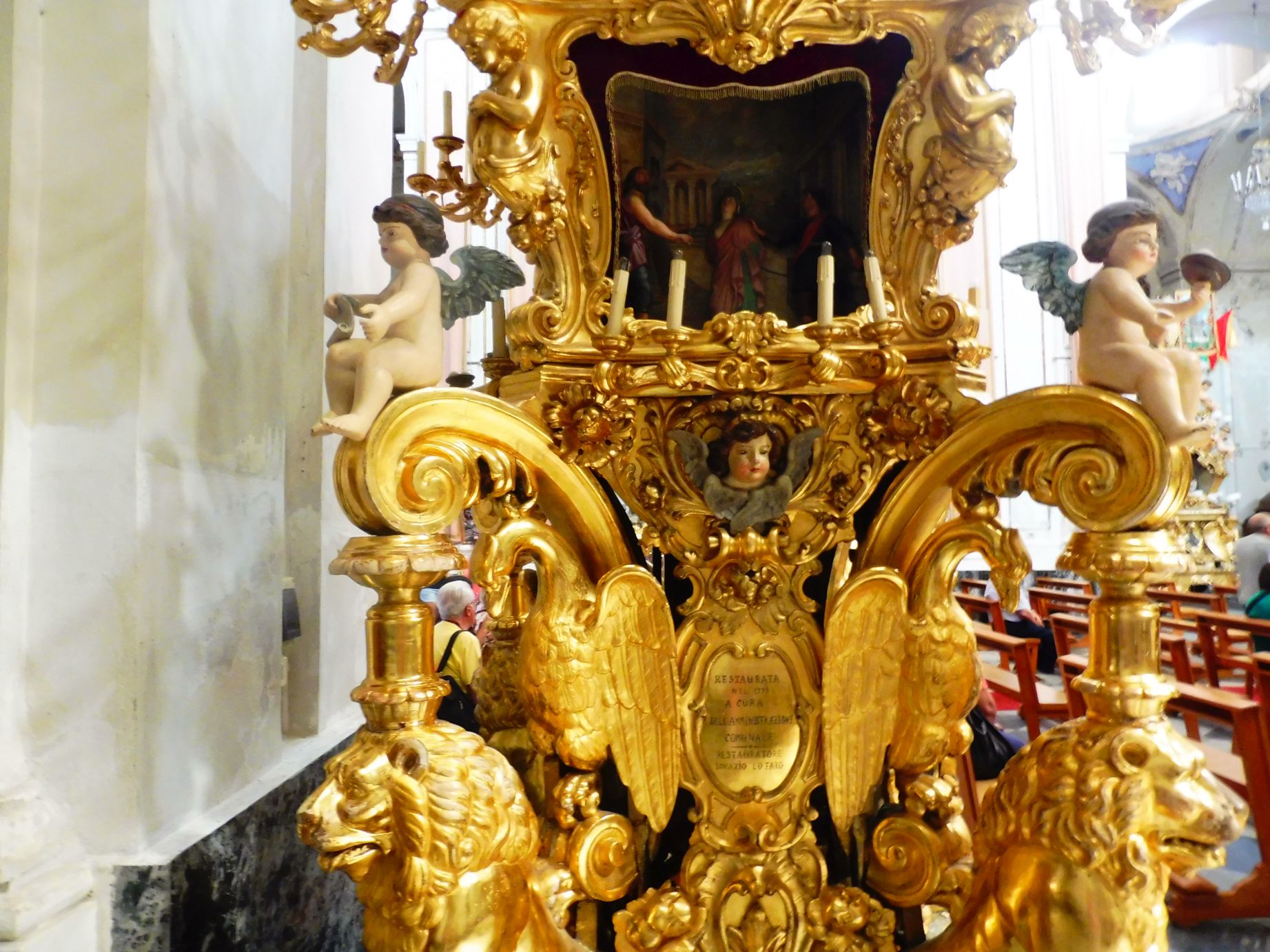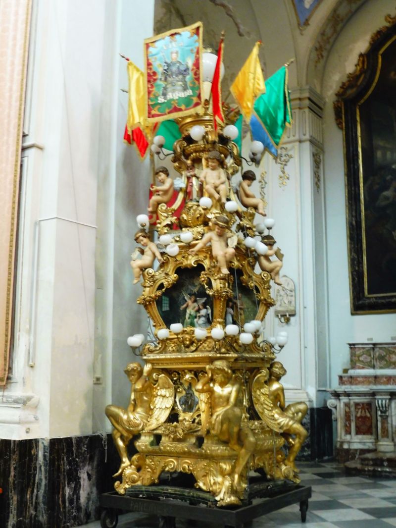 Aquestes vistoses peces s’anomenen els “candelore”. Es poden admirar en l’església on es guarden durant l’any. Tenen un gran protagonisme durant les festes dedicades a Santa Àgueda. El dia 3 de febrer treuen els 11 ciris gegantins, decorats a mà, en una processó que atrau milers de visitants. A la nit fan focs artificials.