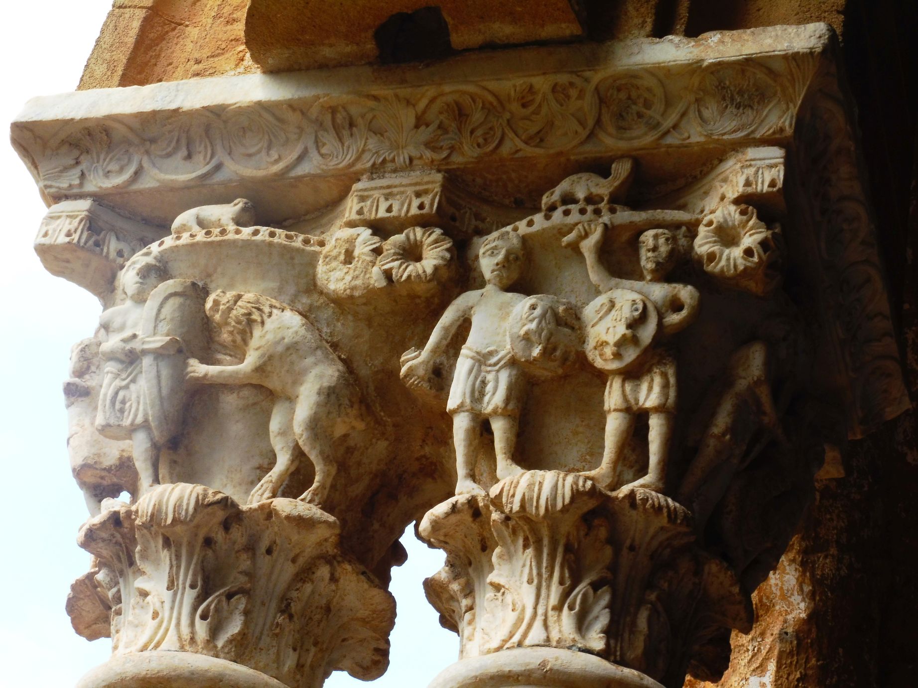 Les columnes, de factura àrab, grega i provençal aguanten capitells treballats amb magnífiques i variades escultures.