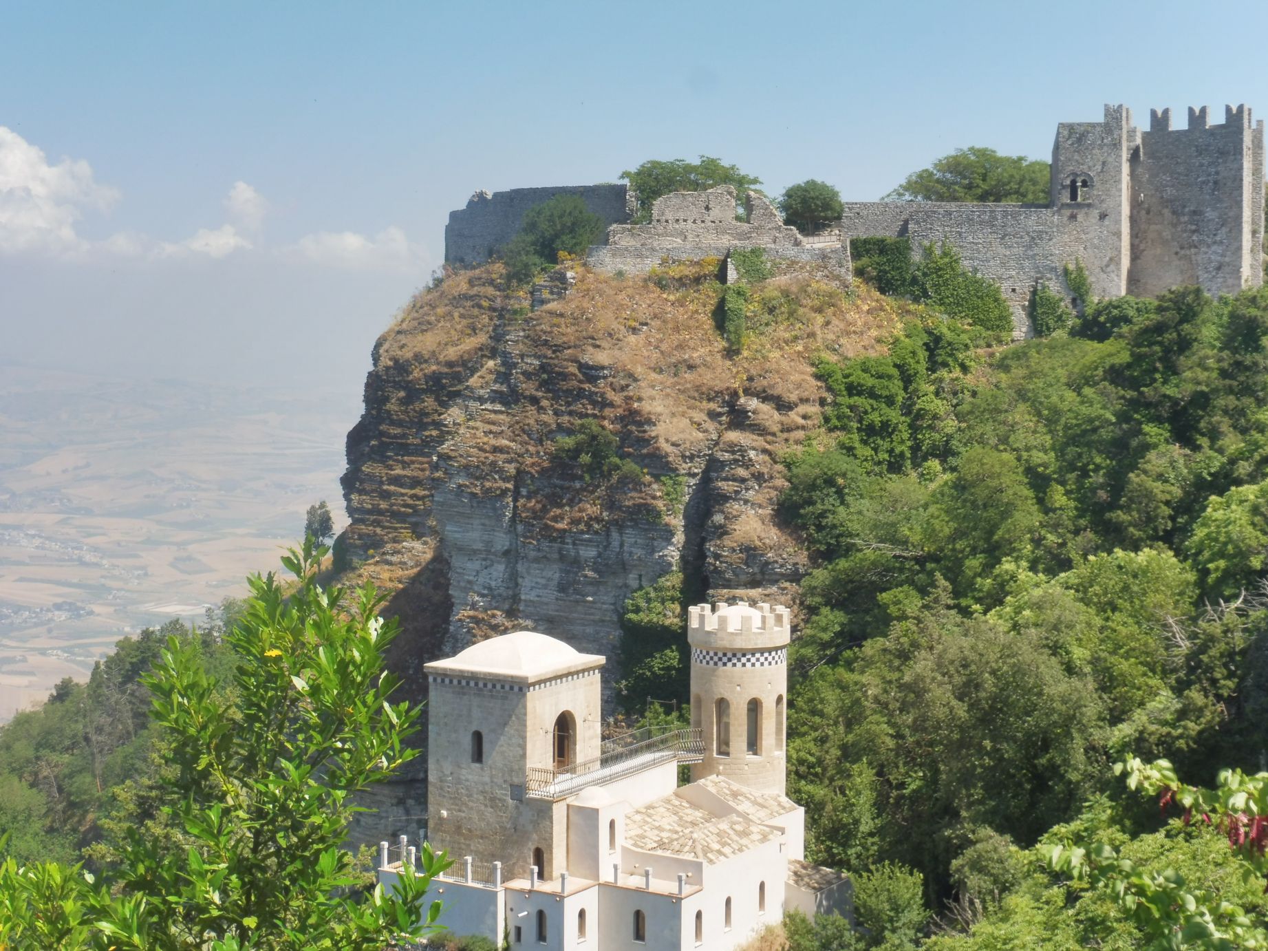 A la part superior de la imatge es veu fragment del castell de Venus. Amb aquests espadats i la plana, que s’endevina al fons, s’intueix l’alçada de la ciutat d’Erice.