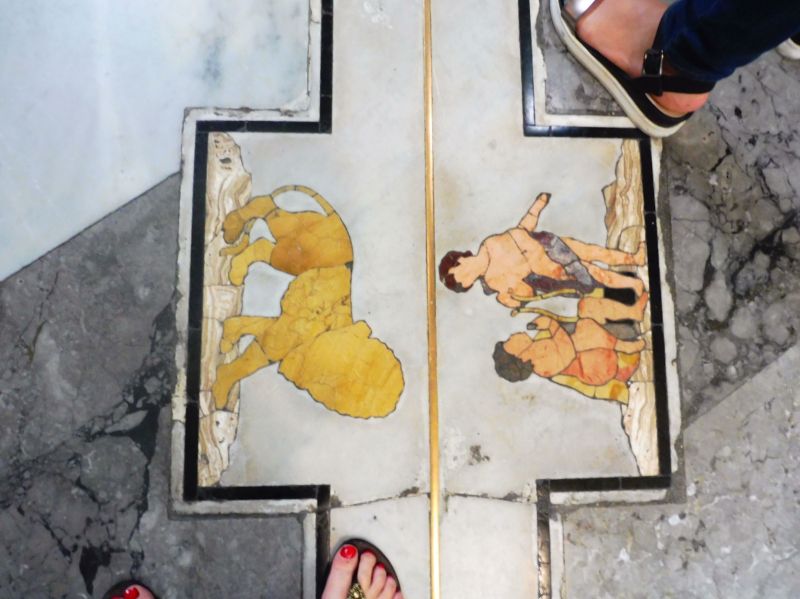 Dins la catedral s’hi troba una completa instal·lació amb els signes del zodiac. Aquí en podeu veure un petit fragment.