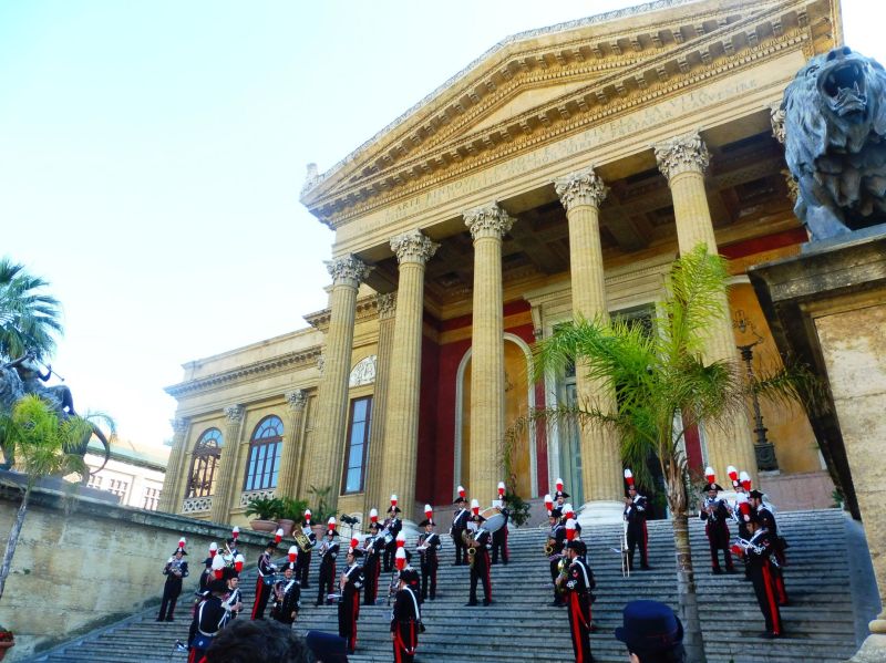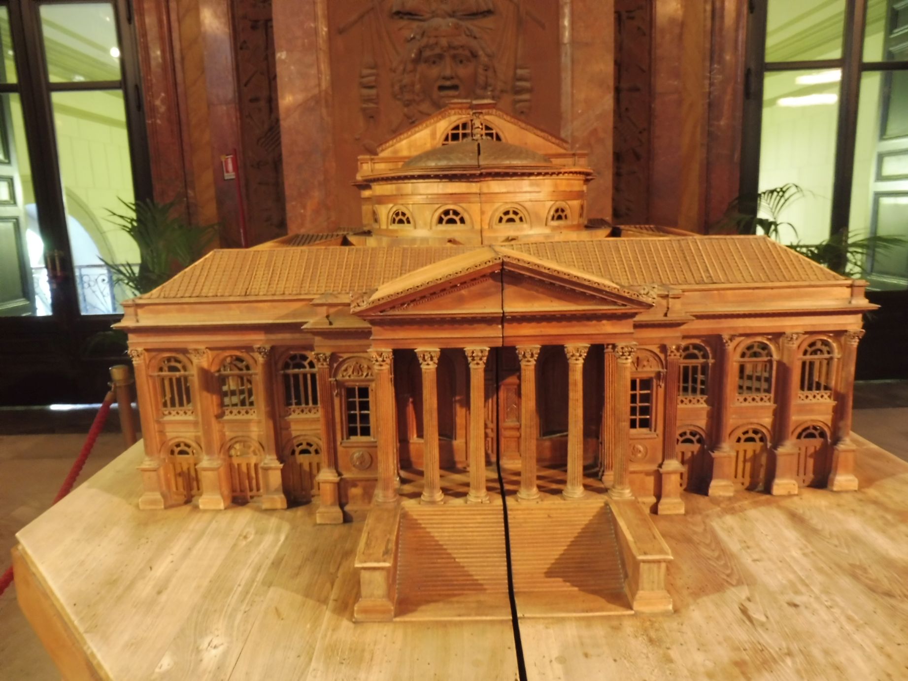 Palerm té un teatre molt famós, especialment perquè Francis Coppola el va triar com a escenari de la darrera escena de la darrera pel·lícula de “El Padrino III”. És el preciós Teatre Màximo del que en la propera imatge en podeu veure la maqueta que es troba al vestíbul d’aquest bonic edifici. És el tercer teatre d’òpera més gran del món, només superat pels de Paris i Viena..