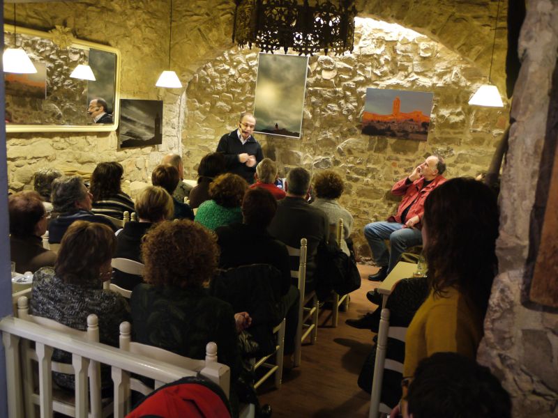 Queda tancada aquesta informació sobre conferències al Campanar amb el record d’un cerverí molt estimat. Aquí el podem veure en el moment que impartia la magistral conferència. Curiosament va descobrir, en una de les fotografies que l’envoltaven i que formaven part de l’exposició presentada per Ramon Aldomà amb les imatges del calendari, un helicòpter que volava molt proper al campanar. Va resultar que era ell la persona que hi viatjava. Una anècdota molt simpàtica que sempre recordarem.