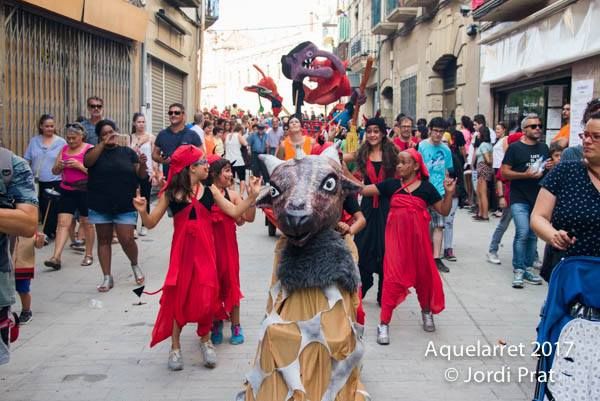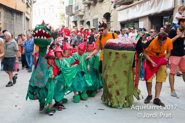 L’activitat protagonista del dissabte a la tarda és l’Aquelarret. Ja fa uns anys que està molt ben consolidat i ve a ser un entrenament pels infants que el dia de demà tindran cura de l’Aquelarre de la nit.