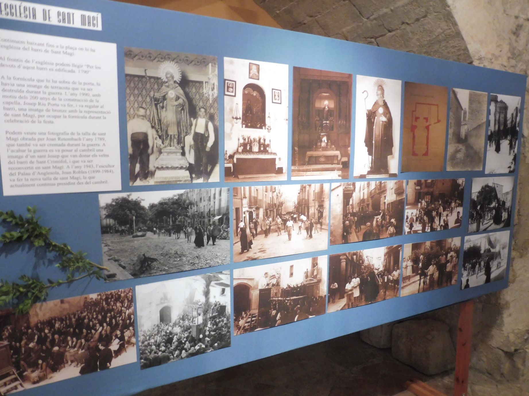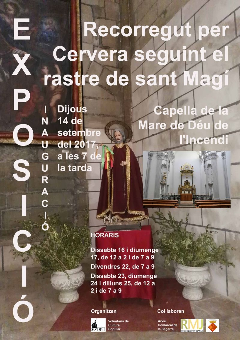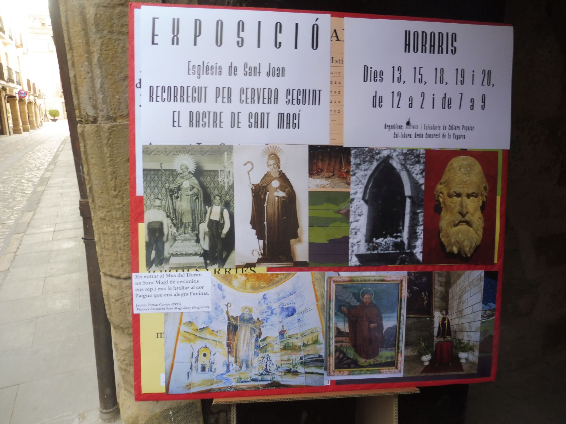 Cada any, per la Festa de Sant Magí, un grup de voluntaris/ries de Cultura Popular preparen una exposició. Aquest any va semblar que estaria bé fer la mostra amb aquest recorregut. Es van buscar imatges relacionades amb els diferents espais en els que Sant Magí hi havia deixat la seva petjada i, l’exposició quedà inaugurada el dia que es presentà el Quadern de 2017 en el que s’hi pot llegir, en el primer text del llibret, l’explicació d’aquest recorregut