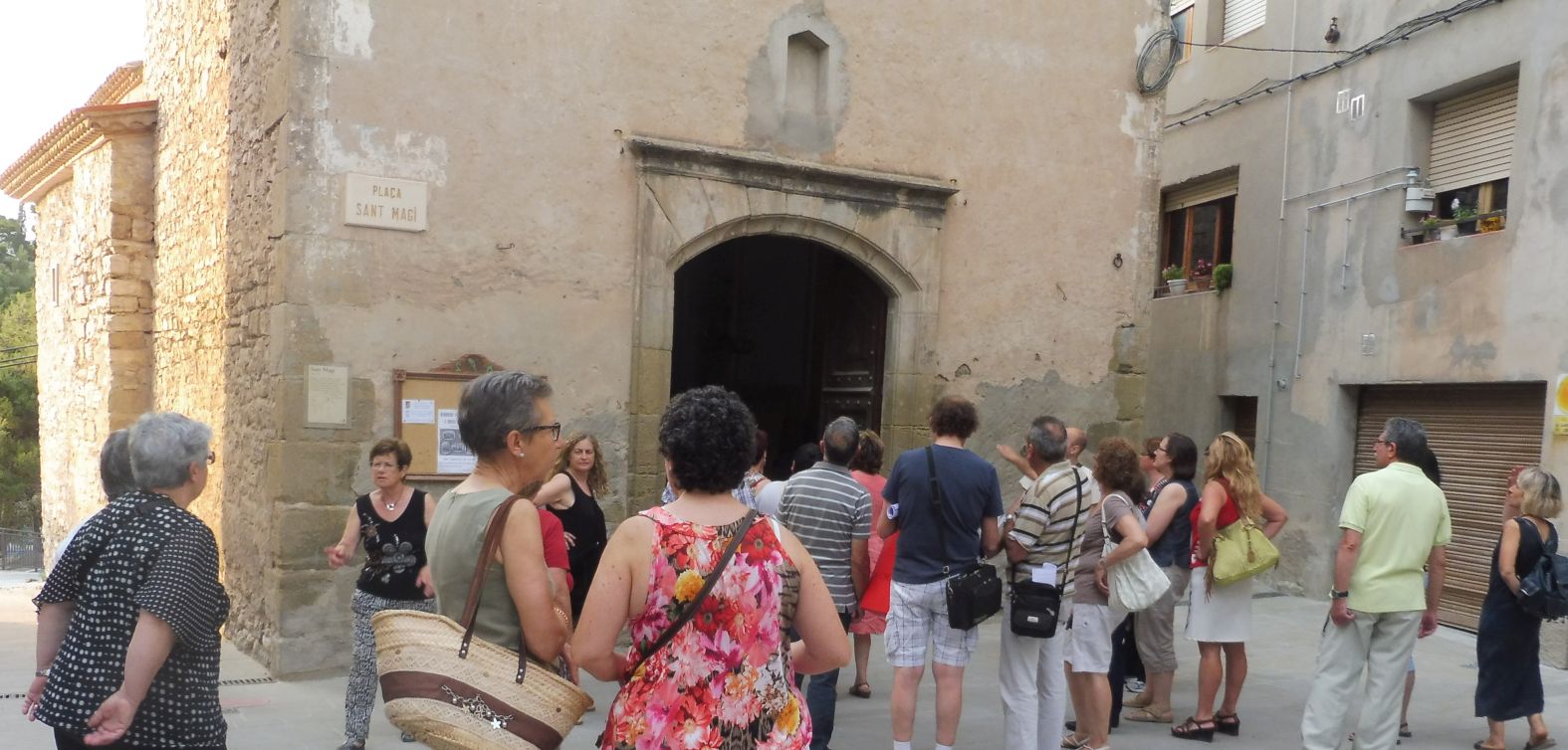 El grup arriba a l’església de Sant Magí on Josep Mas va fer les explicacions.
