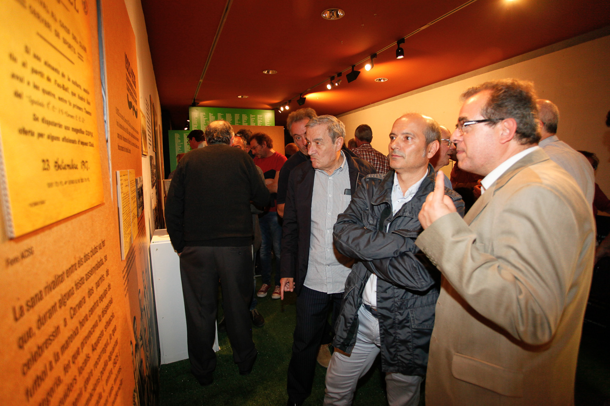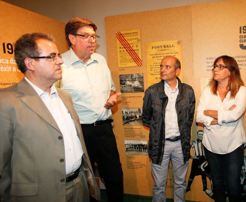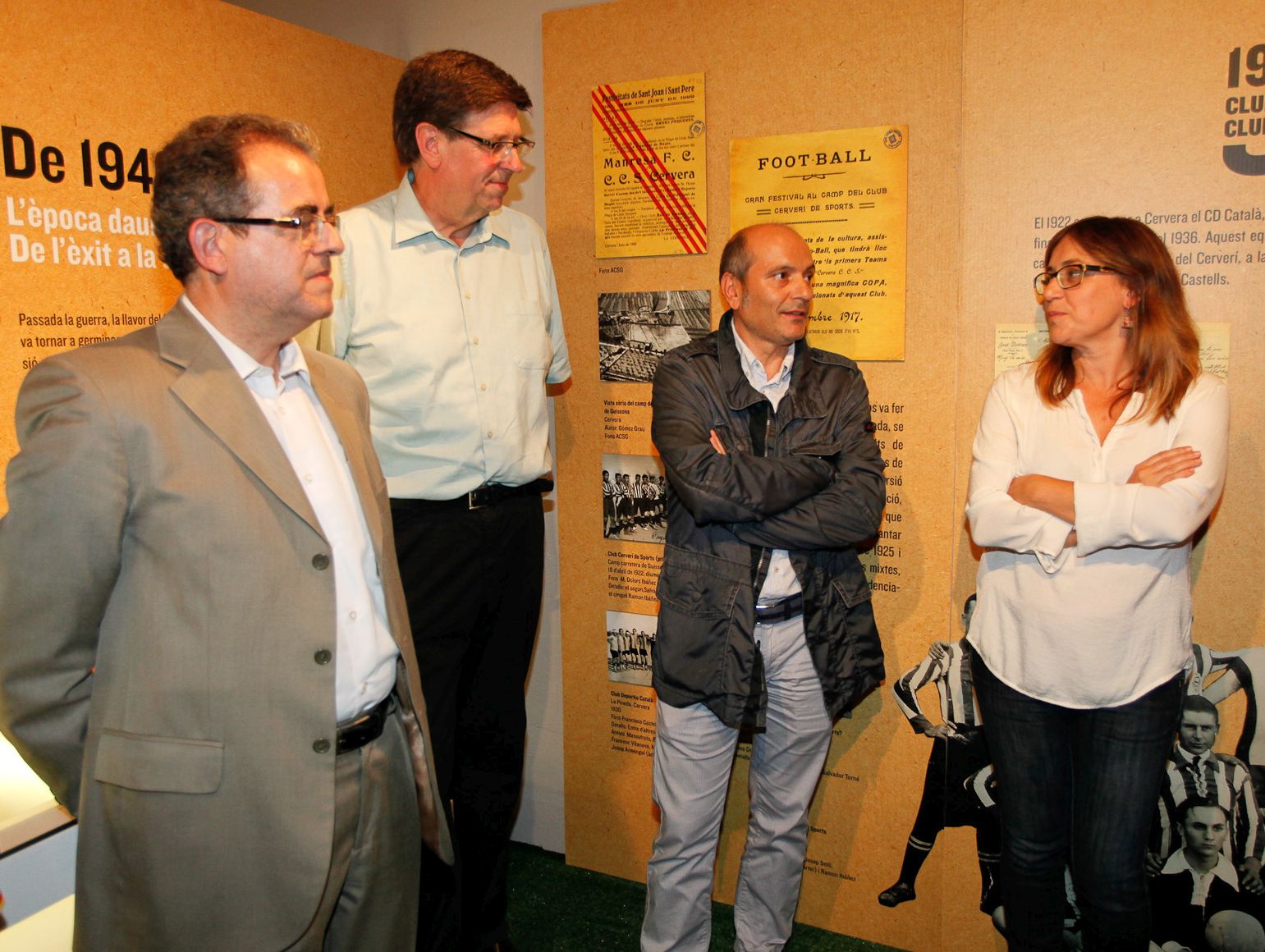 El president del C.E. Cervera, Ramon Bernaus, Joan Prat, Regidor d’Esports i Jaume Rosich, Regidor de Cultura fan el recorregut per aquesta interessant exposició que és del tot recomanable de visitar.